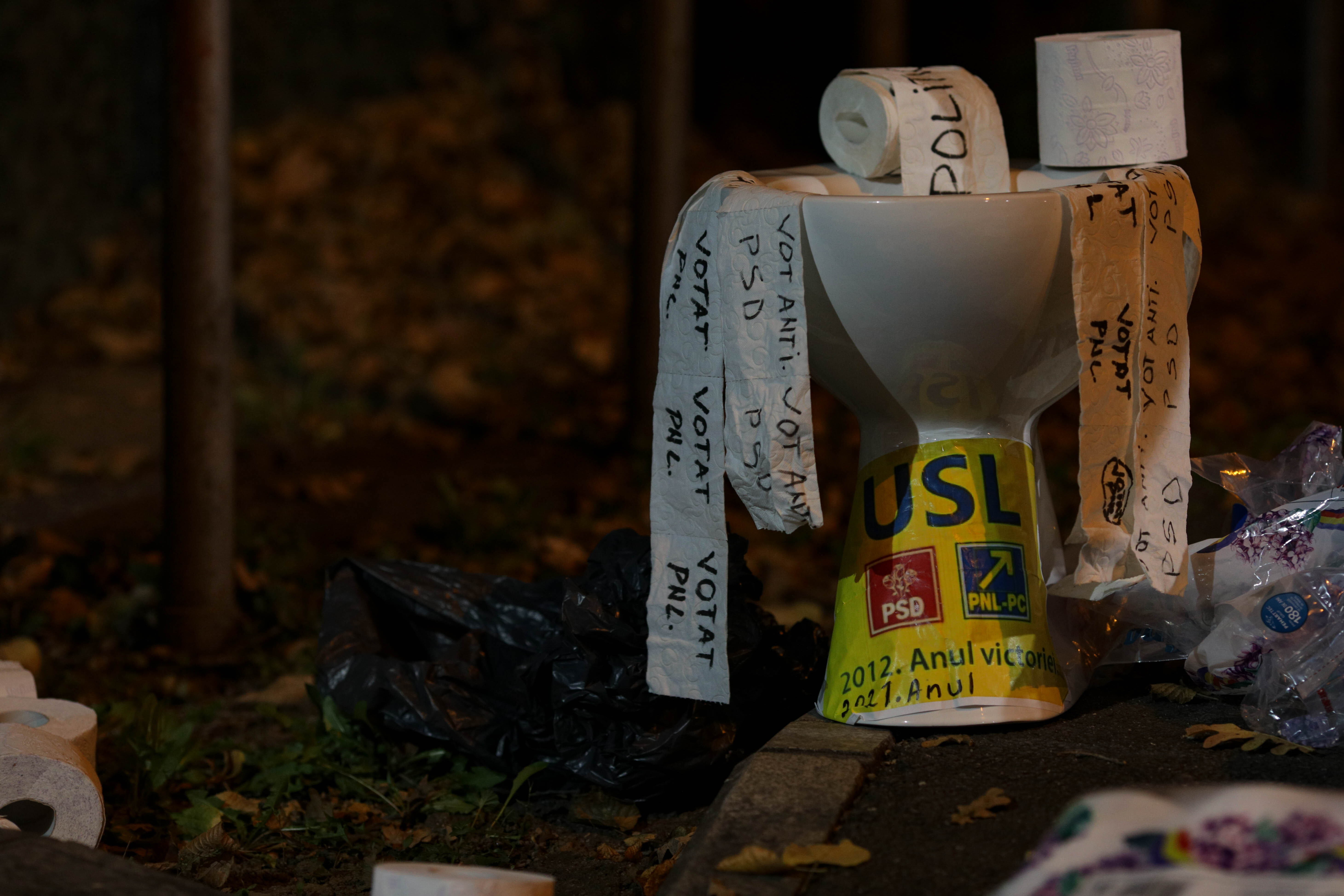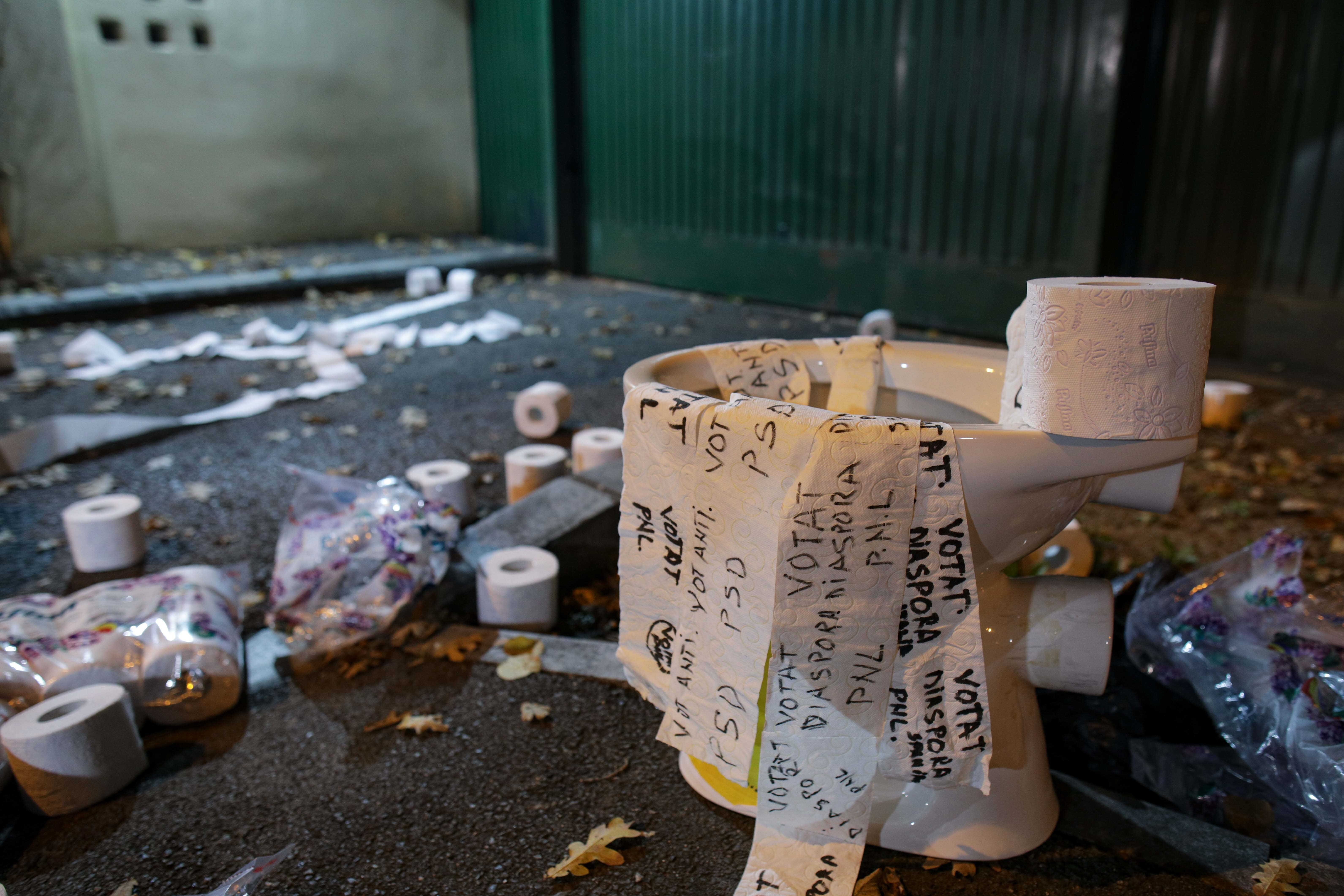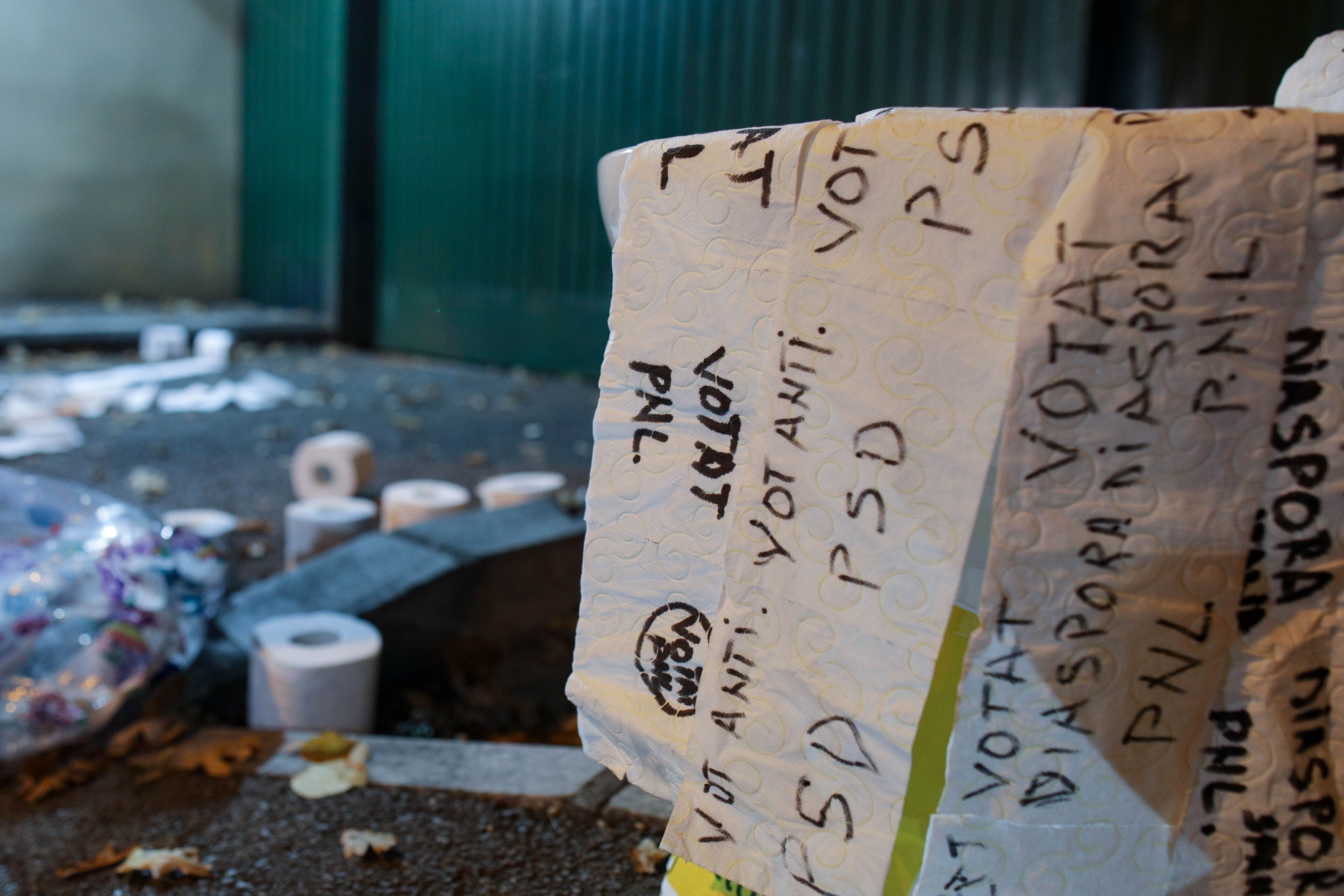 Protest la Vila Lac. Manifestanții au aruncat hârtie igienică înspre mașinile liderilor PNL. GALERIE FOTO și VIDEO