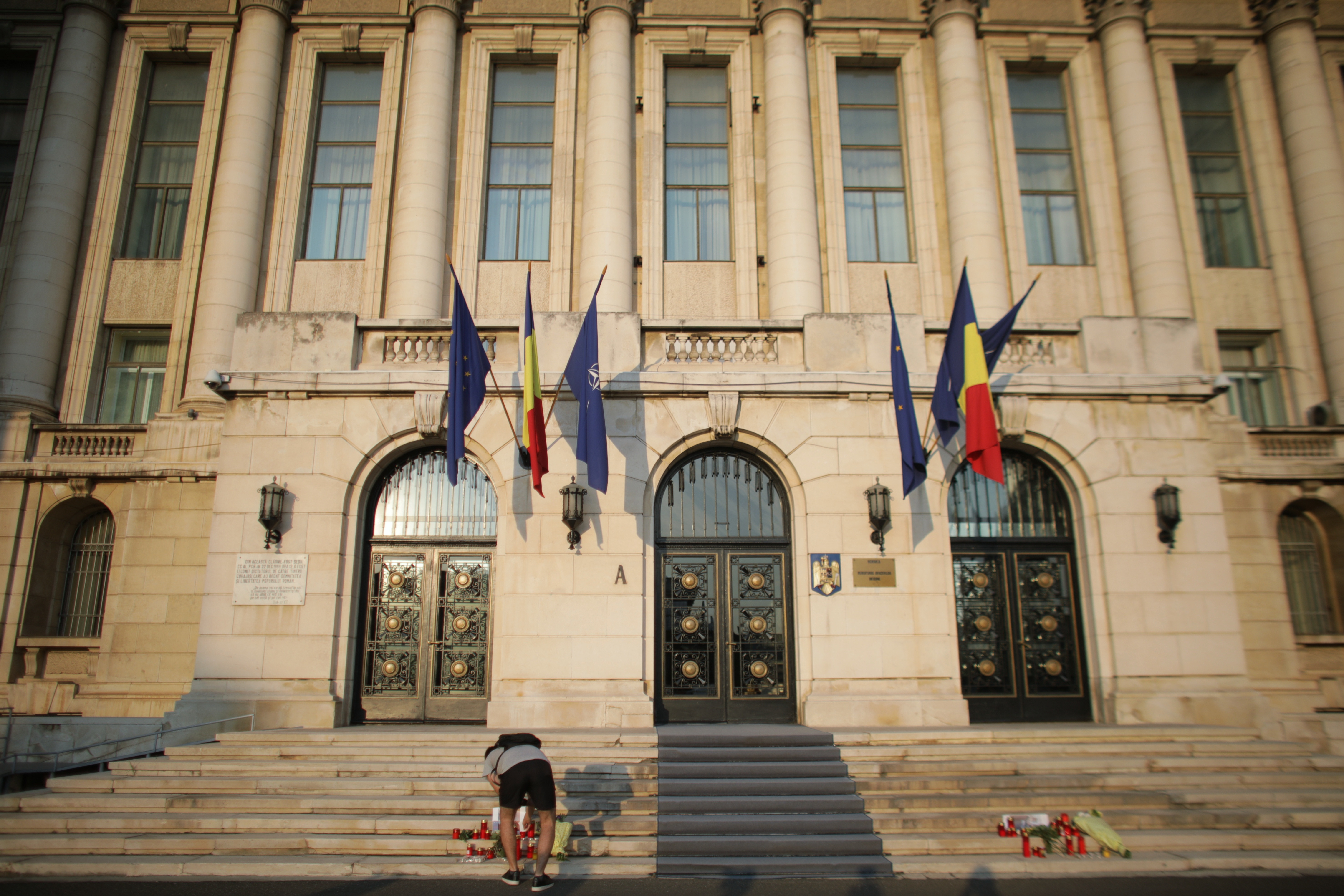 Pe treptele Ministerului au fost puse și fotografiile celor două victime.