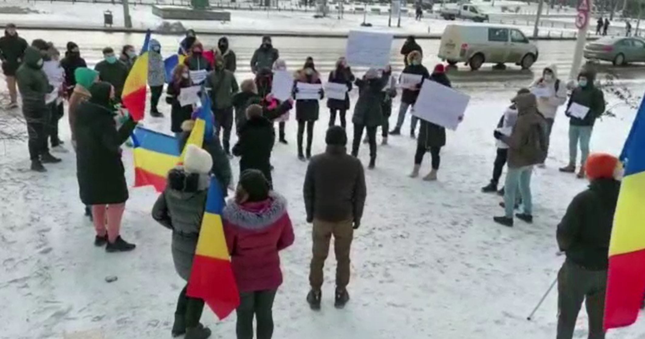 Tinerii au rezistat mai bine de o oră, deși sunt -10 grade.