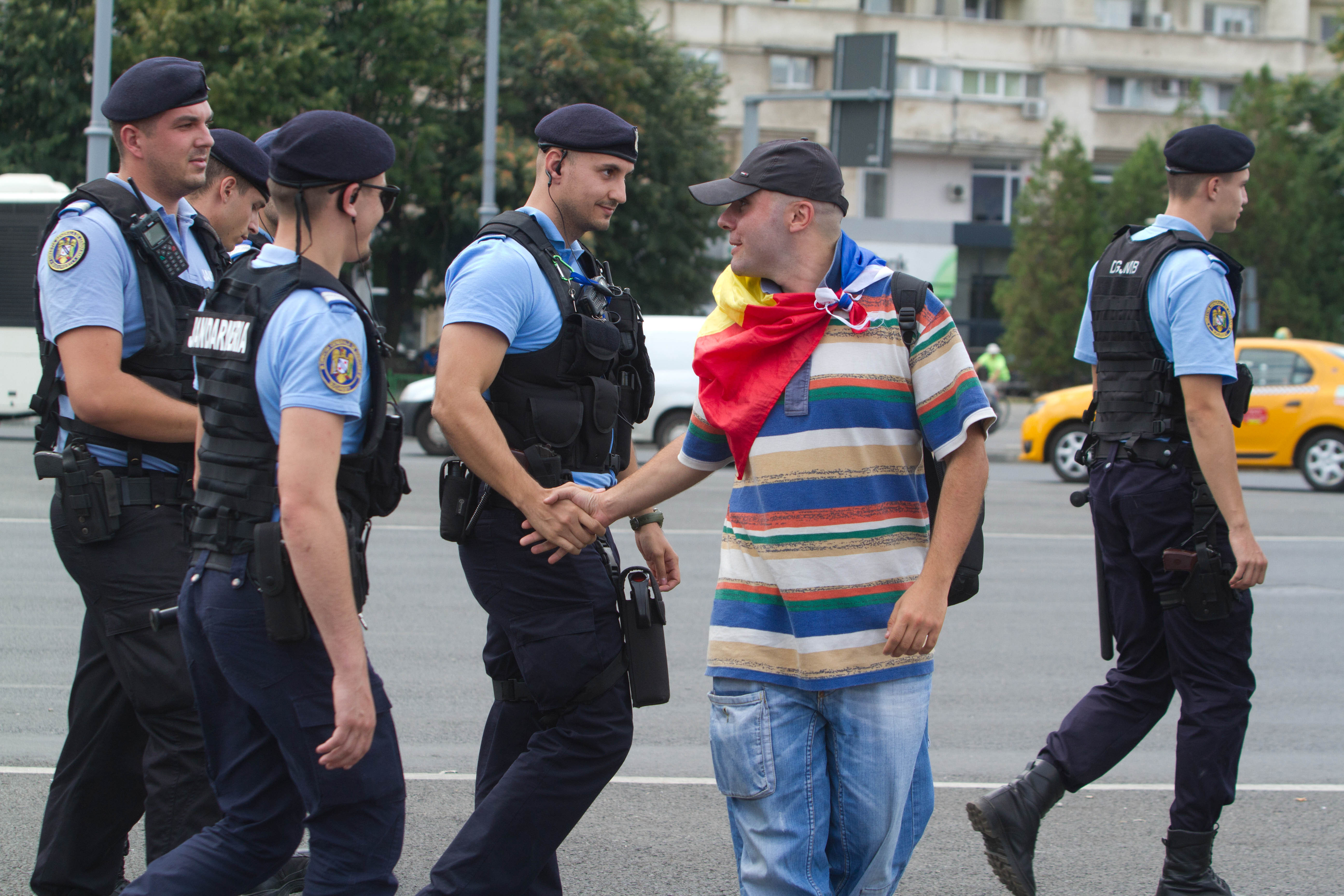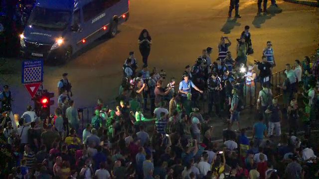 UPDATE 21:35: O persoană care a forţat dispozitivul de ordine, ridicată de jandarmi. Conform Jandarmeriei Bucureşti, o persoană care a forţat dispozitivul de jandarmi dinspre Iancu de Hunedoara a fost scoasă din mulţime şi va fi dusă la secţia de poliţie, conform News.ro.