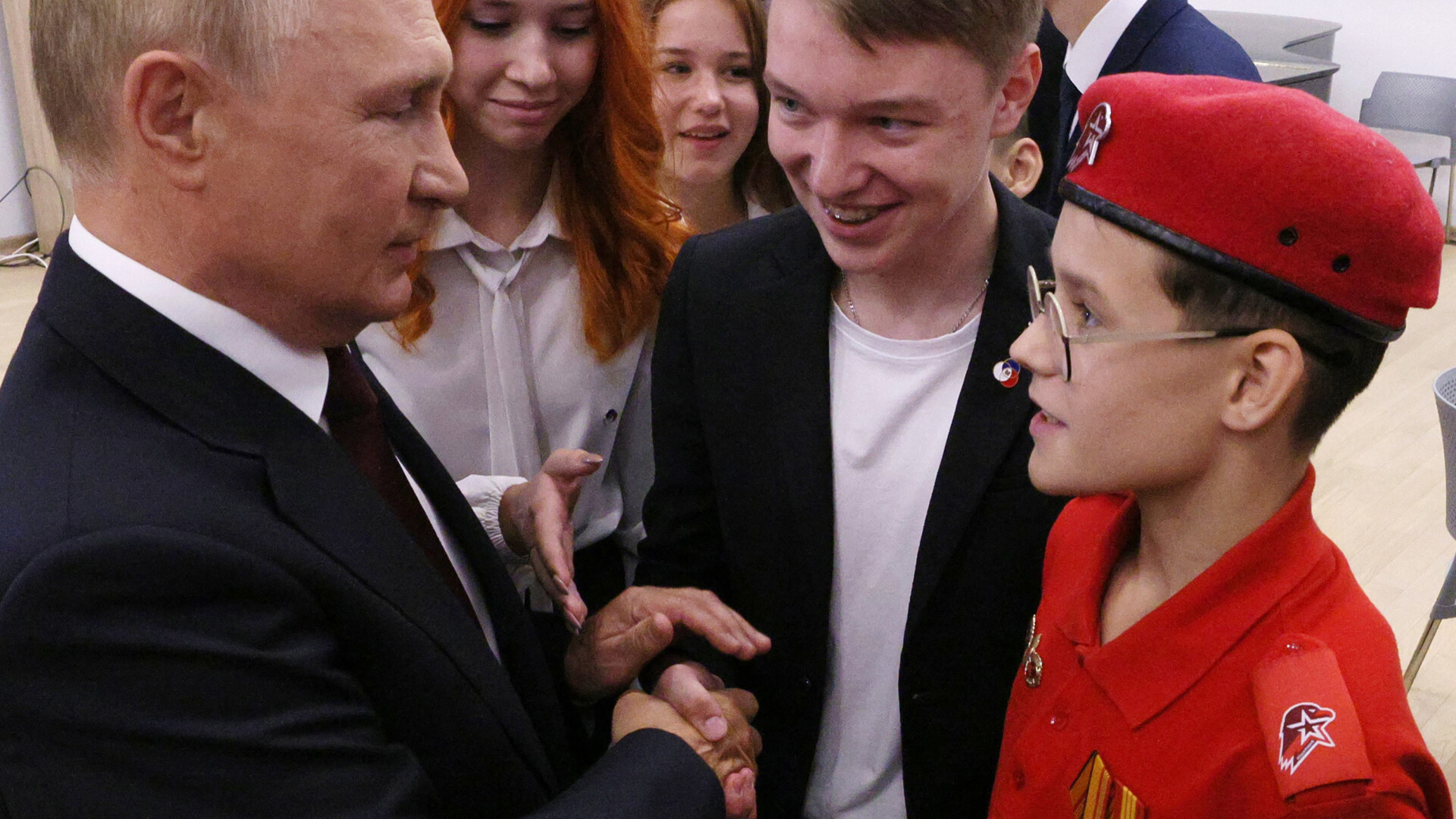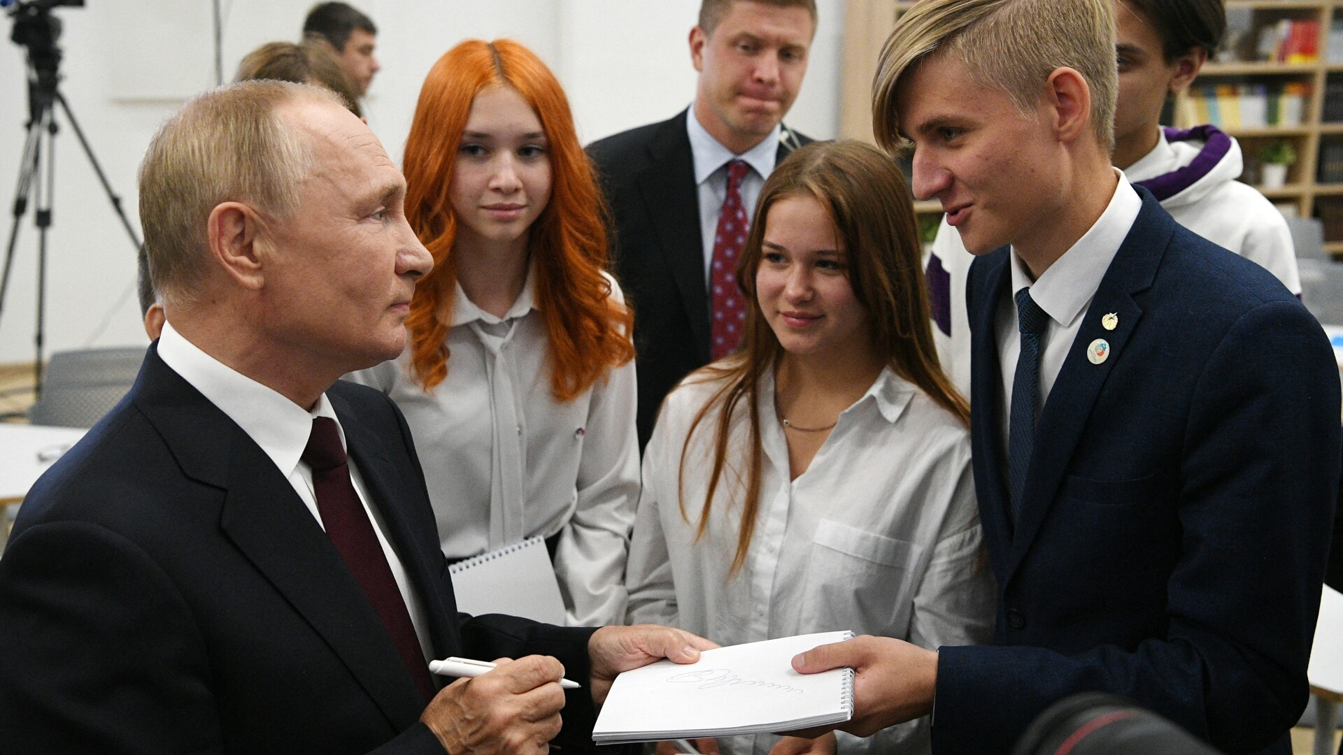 Președintele Vladimir Putin a vizitat o școală din Kaliningrad și a ținut un discurs în care îi încuraja pe copii să-și abandoneze visele în favoarea patriei, informează Daily Beast.