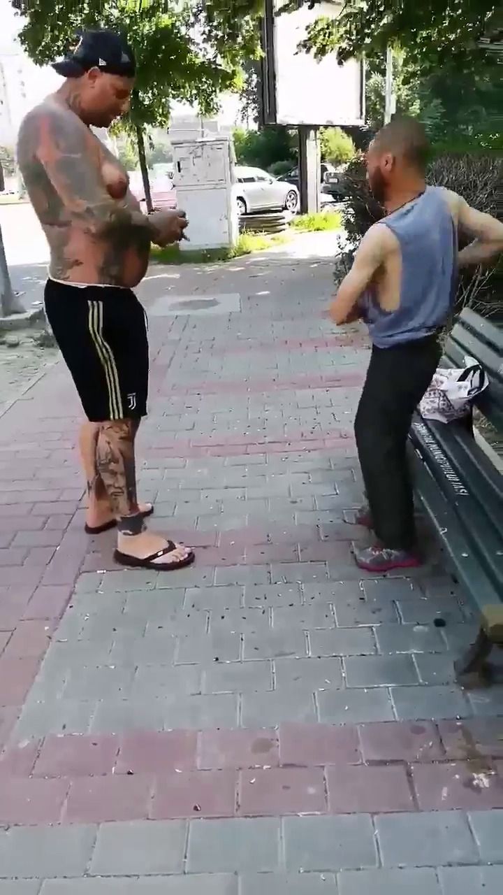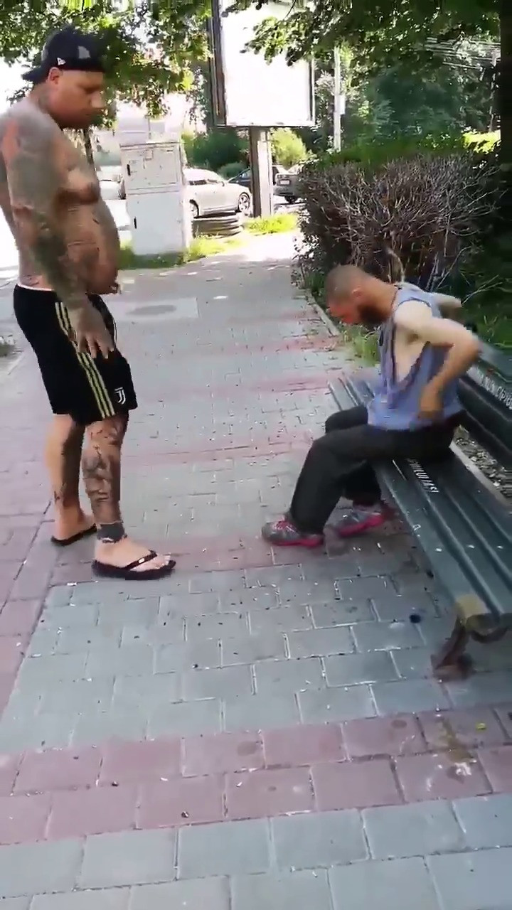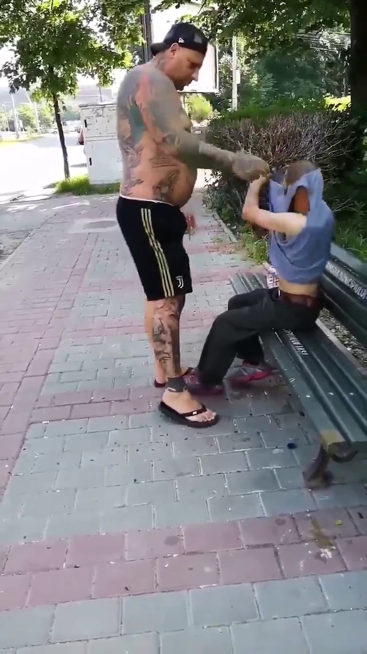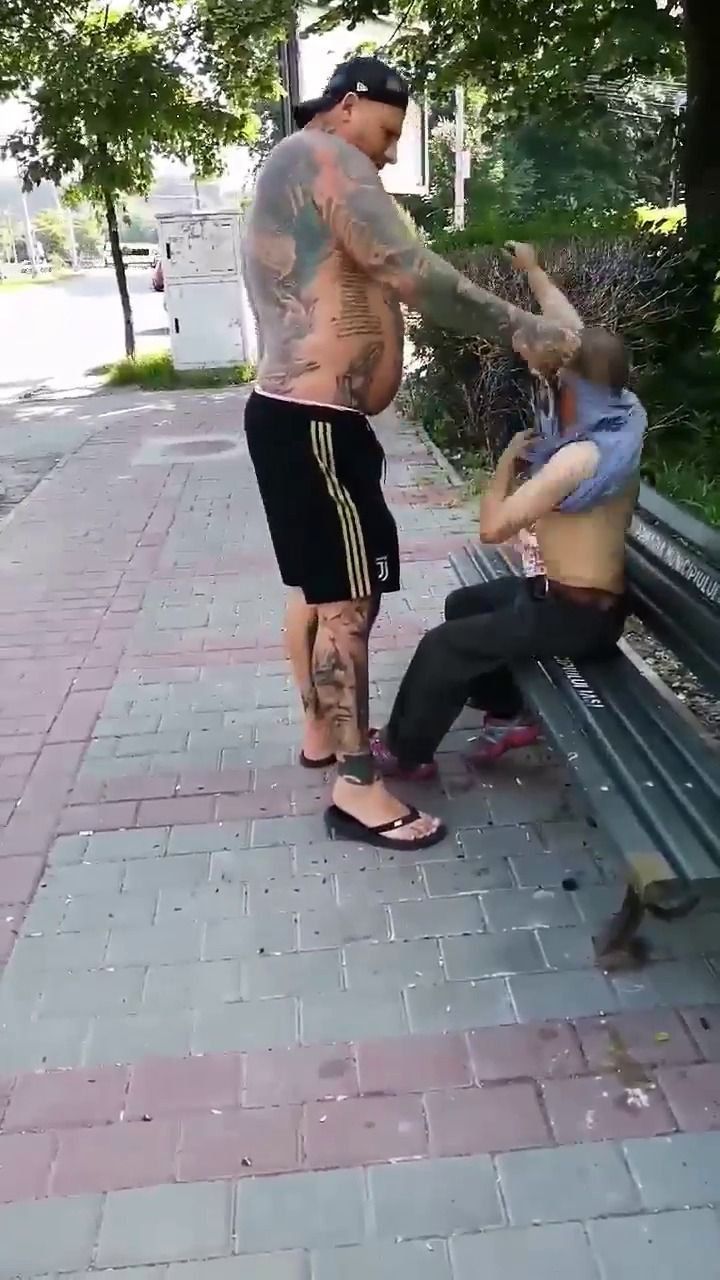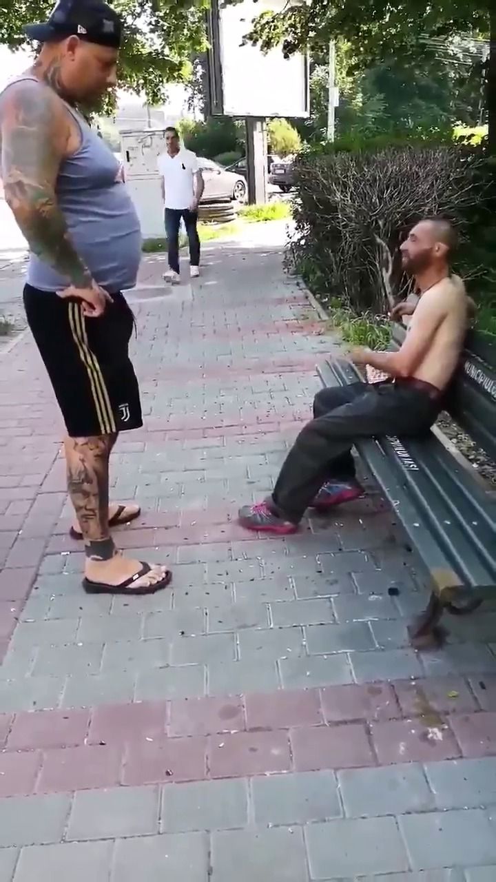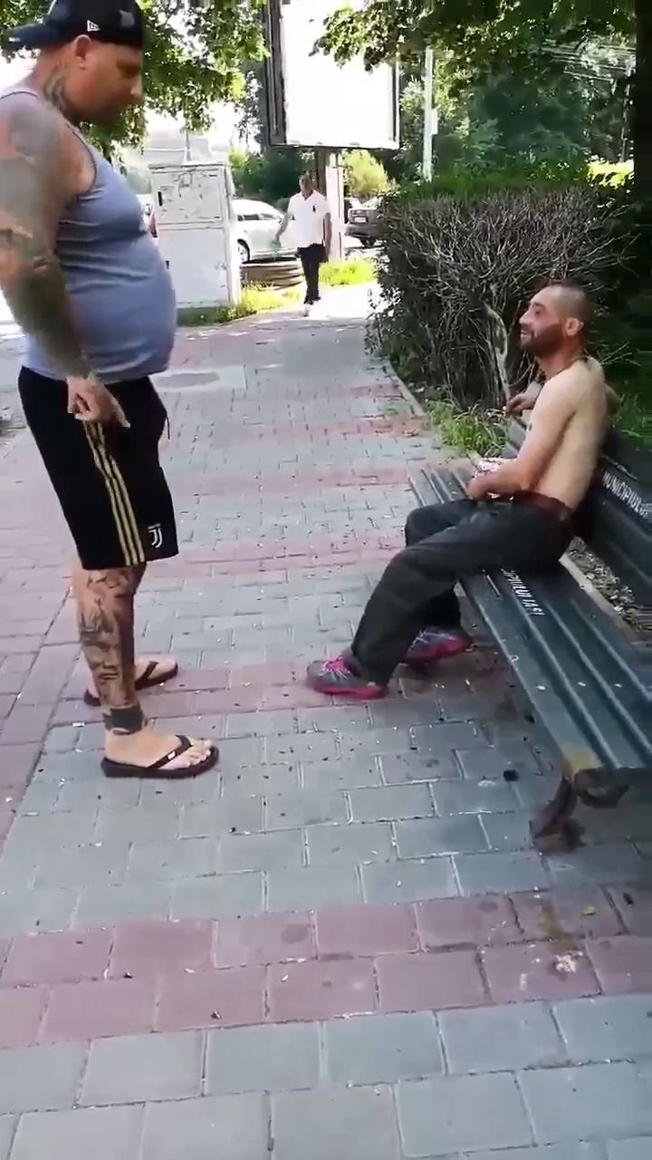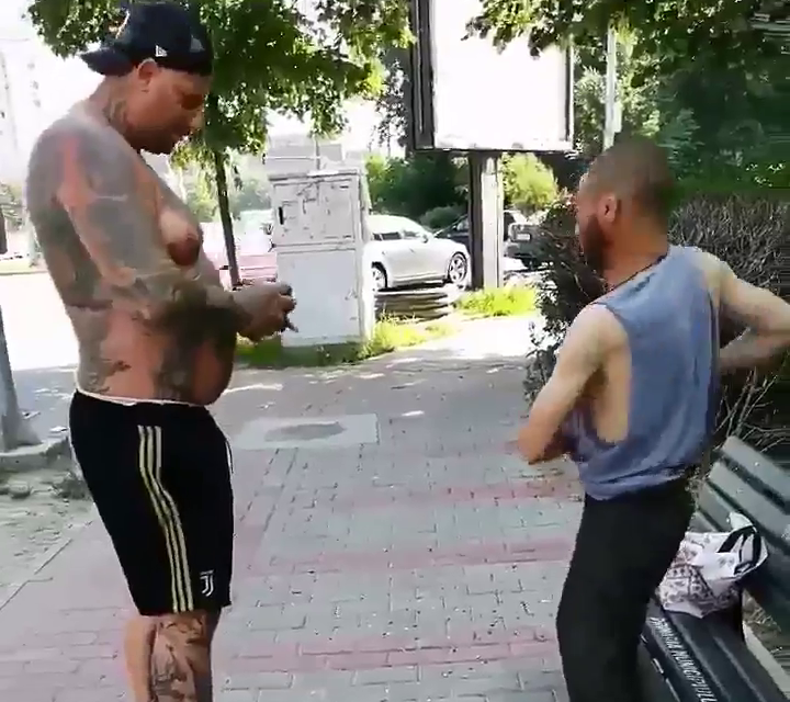 Imagini filmate în Iași, cu un tânăr tatuat și un cerșetor la bustul gol, pe o bancă, au devenit virale după ce au fost publicate sâmbătă pe un cont de Facebook.