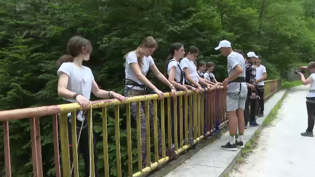 Record naţional în apropiere de Peștera Polovragi. 25 de tineri din Botoșani au coborât în rapel de pe un pod înalt