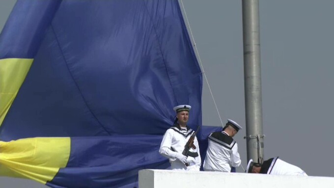 La 10, drapelul a fost ridicat pe catargul de pe faleză, iar navele de luptă și-au arborat însemnele: pavilionul, geacul - adică steagul care indică apartenența la o anumită flotă - și Marele Pavoaz - o serie de steaguri multicolore, întinse de la prova la pupa, care are exclusiv un rol decorativ.