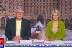 Din pragul casei, o femeie în vârstă privește uimită cum străinii se ocupă de gospodăria ei.