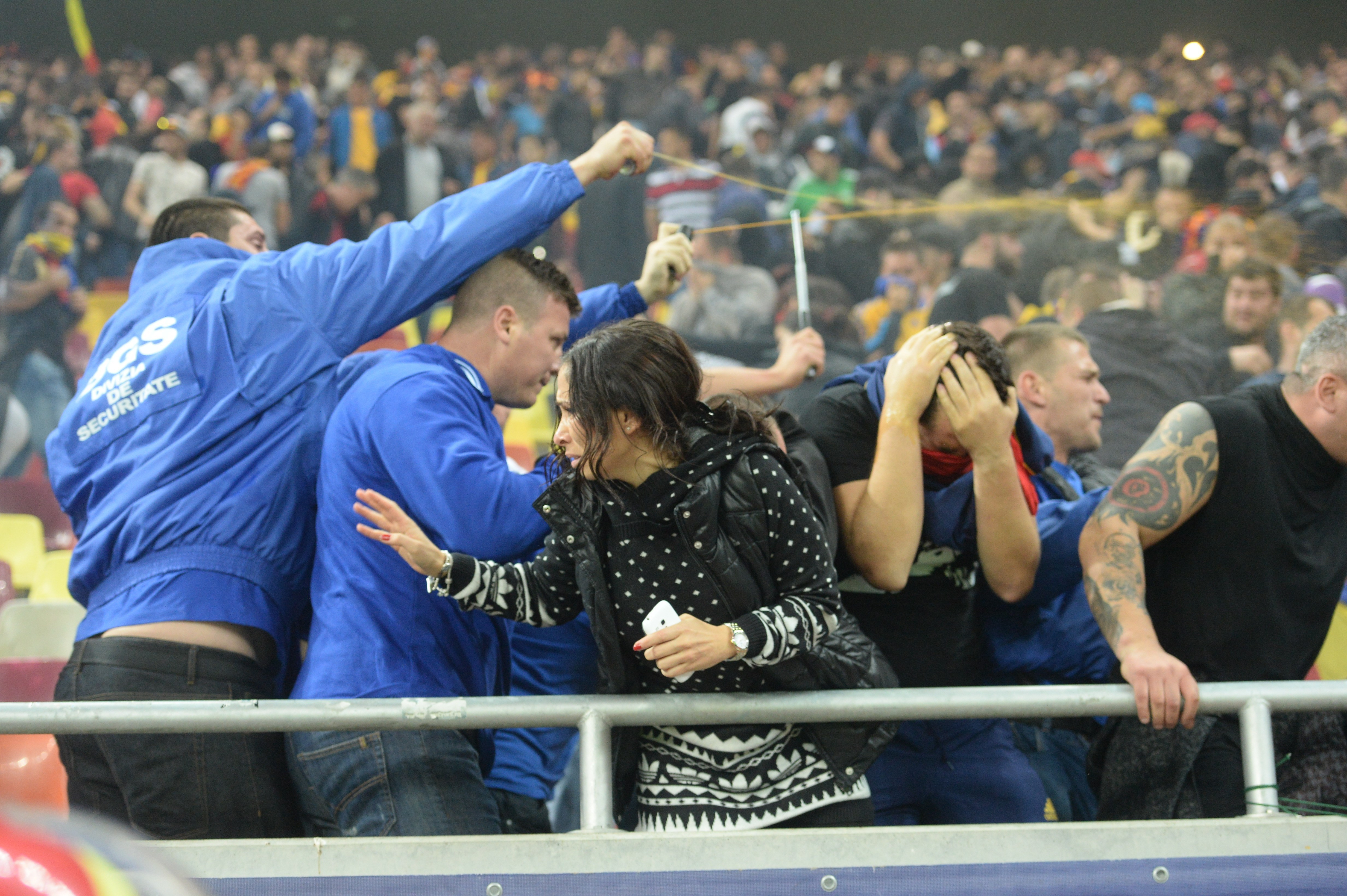 Violente in tribunele National Arena la meciul Romania - Ungaria. 46 de spectatori, printre care si copii, au ajuns la spital