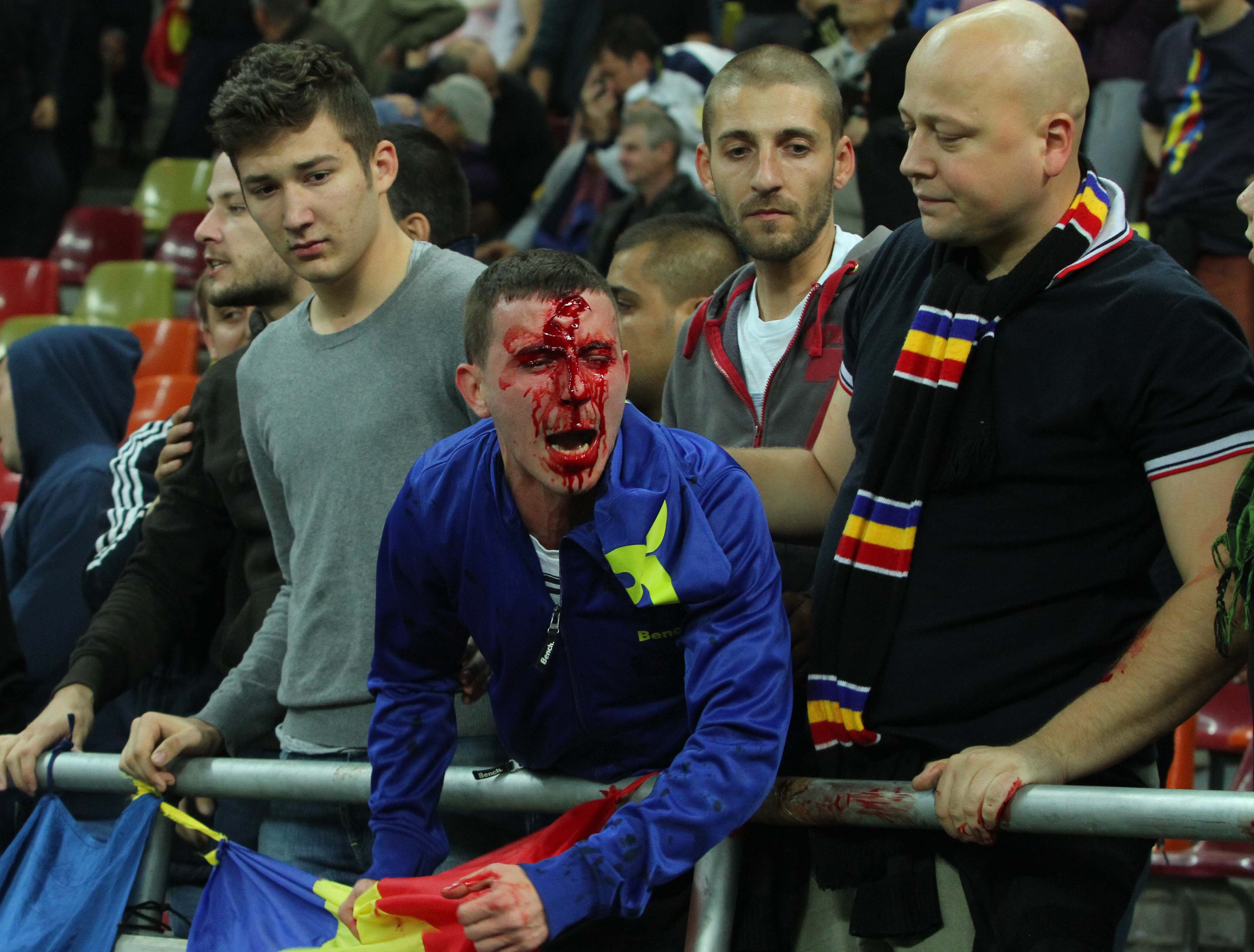 La mai bine de doua ore dupa terminarea meciului, cativa suporteri romani s-au luat la bataie chiar in fata Spitalului de Urgenta Floreasca. Unul dintre ei a fost ranit cu un cutit.