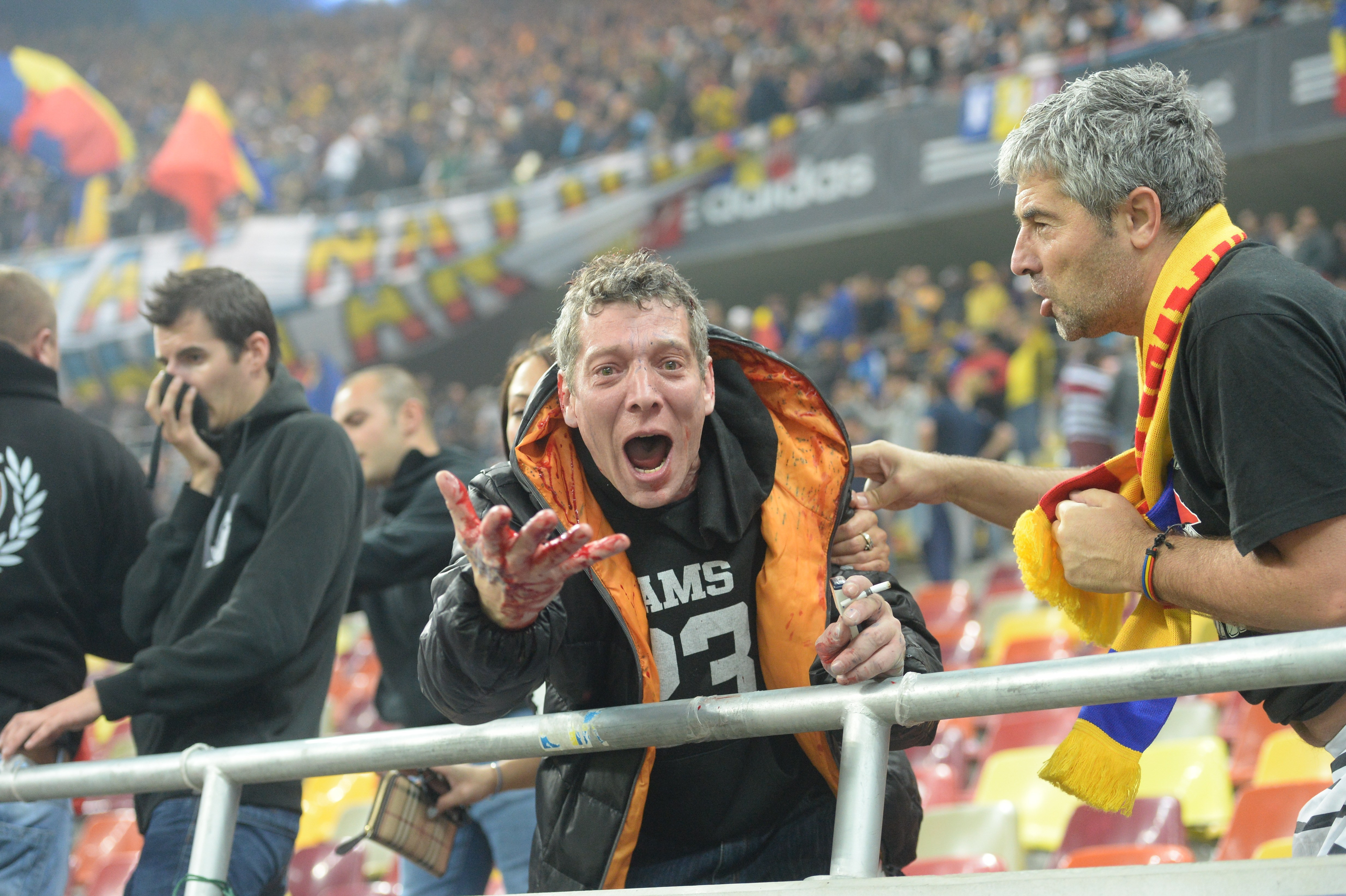 A curs sange sambata seara, in tribune la meciul Nationalei Romaniei cu Ungaria. 46 de spectatori, barbati si femei, au ajuns la spital ori in ambulantele trimise la stadion.