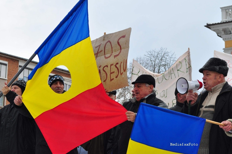 Cateva zeci de suceveni au protestat in fata Palatului Administrativ, cerand demisia presedintelui, a Guvernului si alegeri anticipate. Protestatarii s-au adunat incepand cu ora 18.00 in centrul orasului, dupa ce pe retelele de socializare au fost transmise mesaje privind organizarea unei manifestatii de protest.