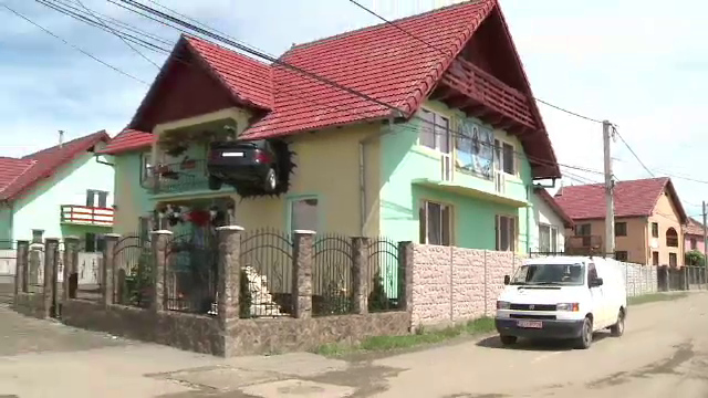 Aceasta este, fara indoiala, cea mai admirata casa din localitatea Sura Mare. Proprietarul ei - om umblat prin lume - a vazut ca prin Ungaria, Cehia si Slovacia nu se mai porta masinile in garaj ci in... casa. Initial a atarnat masina la etaj. Apoi a venit cu idee sa o... infiga in perete!