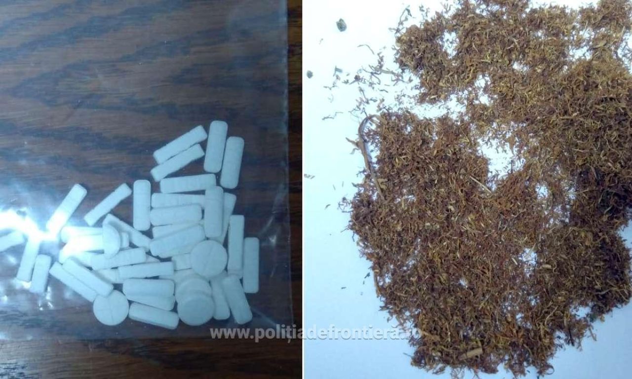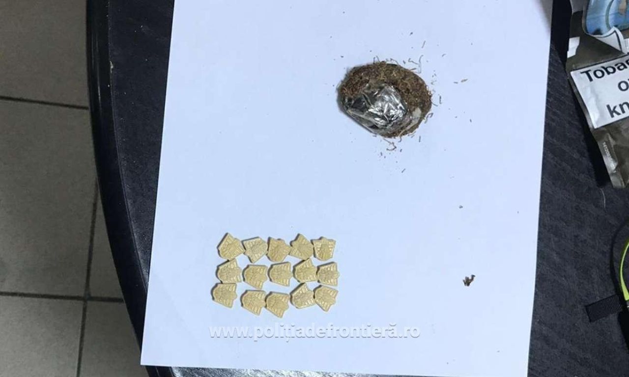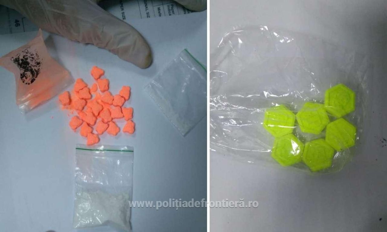 Astfel, poliţiştii de frontieră au descoperit, ascunse in genţile de mână sau bagajele de cală, mai multe tipuri de substanţe interzise: şase pastile de culoare verde fluorescent, susceptibile a fi produse amfetaminice (ecstasy/MDMA), şase ţigarete de tip joint confecţionate artizanal, ce conţin substanţe vegetale de culoare verde-olive susceptibile a fi marijuana, patru grame de substanţă vegetală, având culoarea maro, susceptibilă a fi haşiş, 26 de pastile ecstasy, o substanţă fină sub formă de praf cristalin de culoare albă, susceptibilă a fi cocaină, într-o cantitate aproximativă de 5 grame şi 43 de produse farmaceutice/substanţe psihotrope, inscripţionate GG249 şi Xanax, susceptibile a conţine substanţa ALPRAZOLAM.