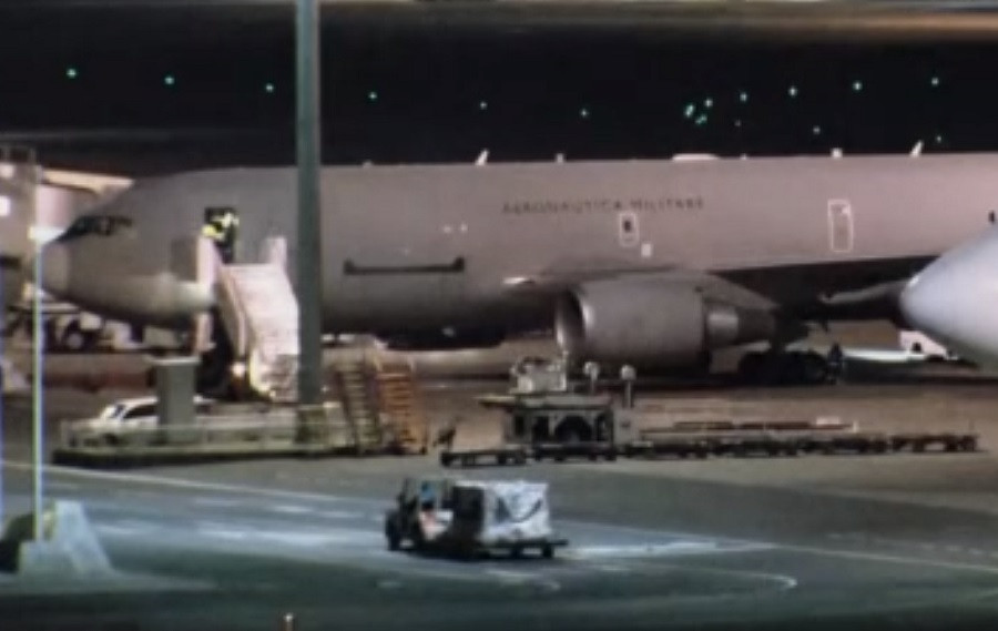 Site-ul lastampa.it a prezentat imagini din momentul plecării aeronavei militare italiene, spre Japonia, precum și imagini din aeronavă, unde a fost instalat un cort din material plastic, închis ermetic.