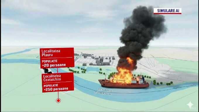 Pericolul persistă la granița României, după ce o navă cu GPL a luat foc în zona Ismail. Două localități rămân evacuate
