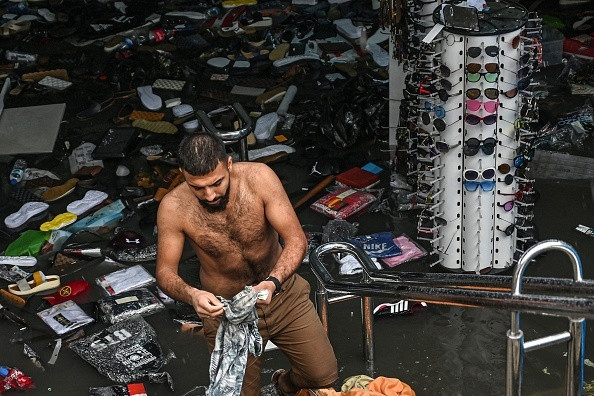 În imagini difuzate pe reţele de socializare și de mass media, comercianţi din Marele Bazar încercau să-şi protejeze marfa. Un om al străzii a fost găsit mort.