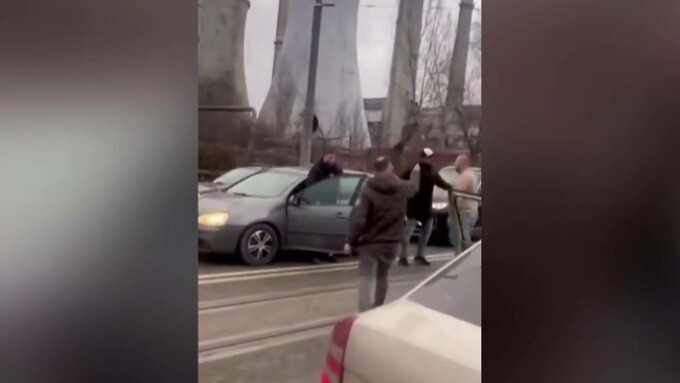 O cameră de bord i-a surprins pe cei doi în timp ce opresc autoturismele în mijlocul drumului. Șoferul de 31 de ani, care conducea mașina din spate, coboară din vehicul și se repede spre autoturismul din față.