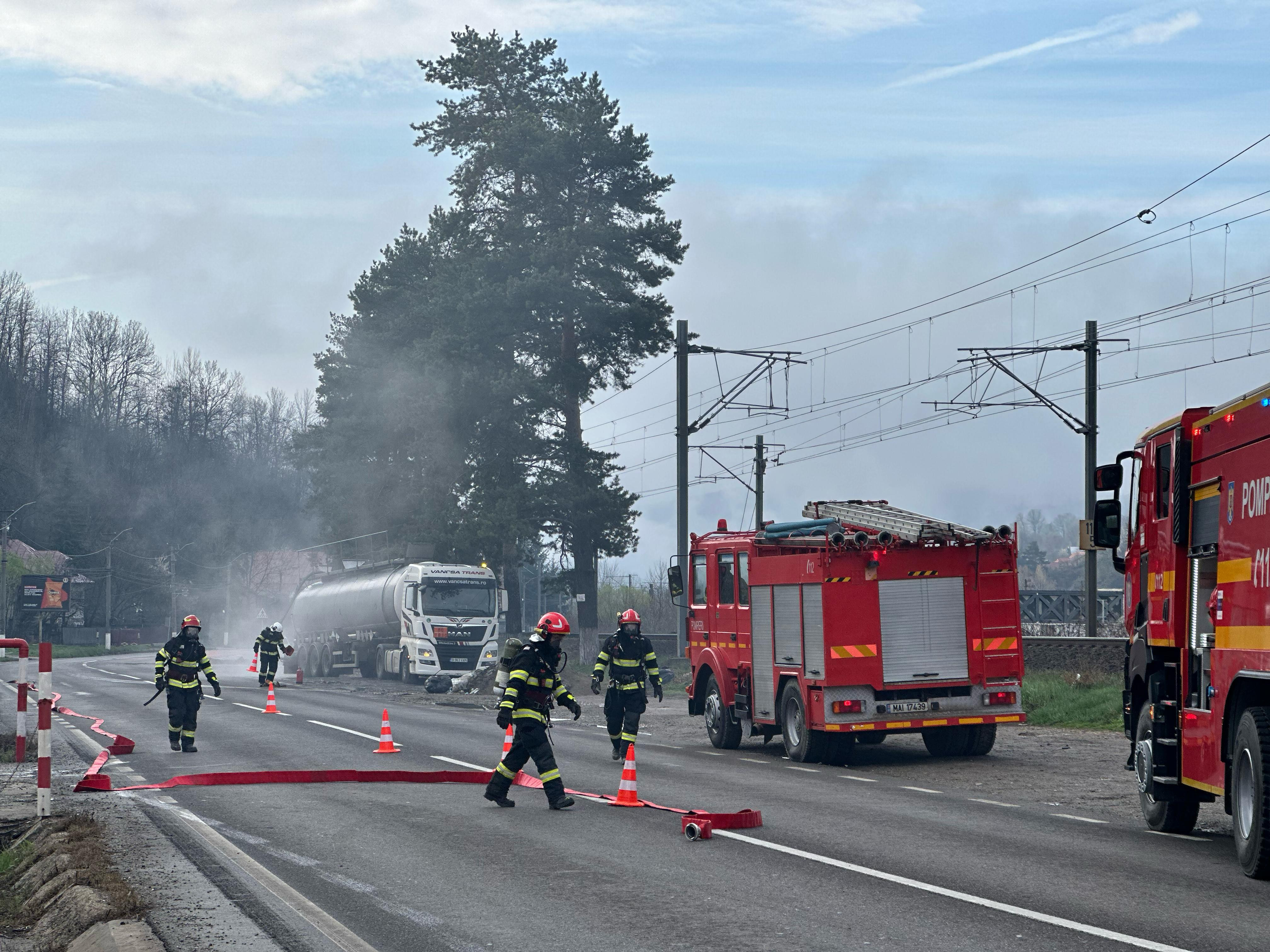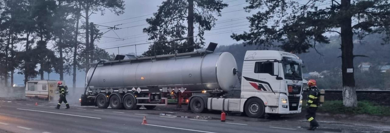 Scurgeri de acid sulfuric dintr-o cisternă aflată pe DN 1, la Comarnic. Casele din zonă au fost evacuate, s-a emis RO-Alert