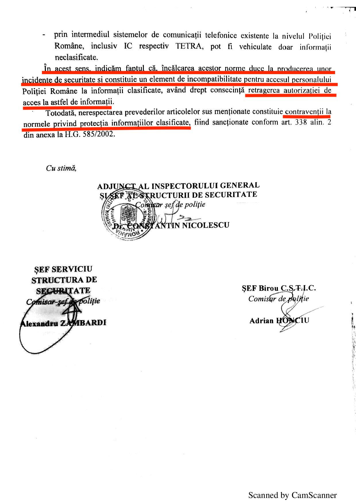 In primul rând este vorba despre încălcarea prevederilor HG 585/2002 pentru aprobarea Standardelor naționale de protecție a informațiilor clasificate, ceea ce poate conduce la măsura retragerii autorizației de informații clasificate. Iar după cum bine știm, în lipsa acestei autorizații, polițiștii sunt puși la dispoziția unității și pot chiar să ajungă în situația de a li se înceta raporturile de serviciu.