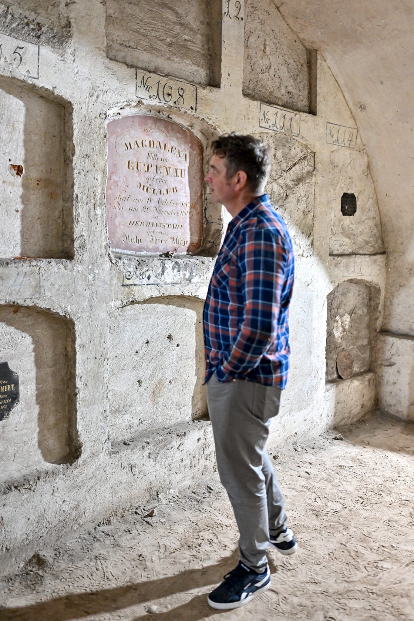 De remarcat că fiecare criptă are un număr pictat deasupra, foarte important pentru că în funcţie de el se găsesc în arhivele parohiale informaţii şi documente despre defunct. În plus, registre sunt expuse la parter.