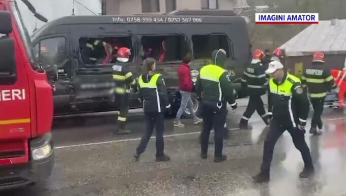 Trei oameni, printre care și un copil de 4 ani, au fost răniți atunci când bărbatul care mergea spre Suceava ar fi frânat brusc și a lovit un microbuz pe sensul opus.