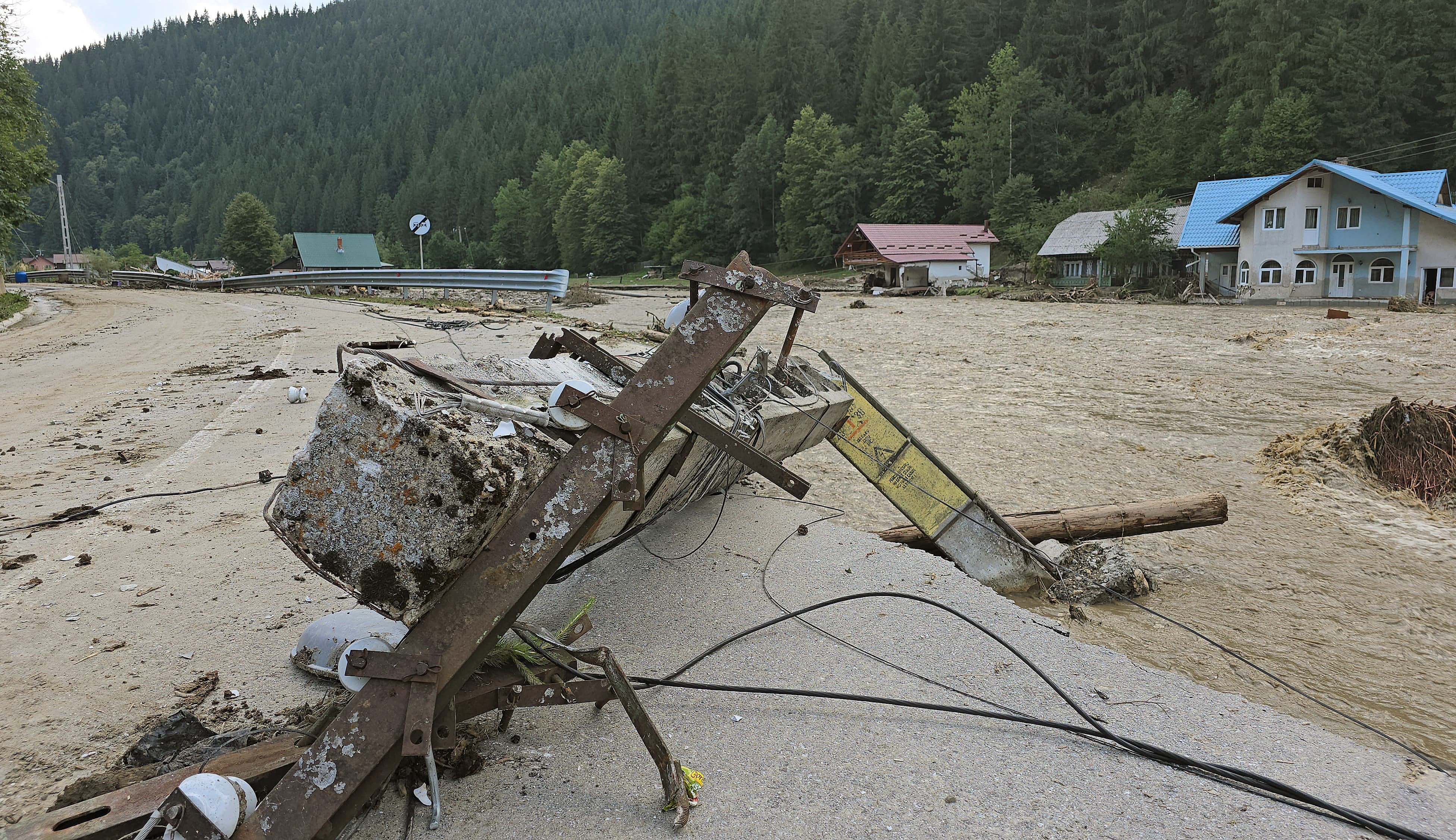 În Broșteni și împrejurimi, peisajul e apocaliptic. Autoritățile au avut până acum 1.550 cazuri de acordare de prim ajutor și două mii de solicitări de la cei afectați de inundații. 230 de persoane au fost salvate din situații critice, unii cu elicopterele.