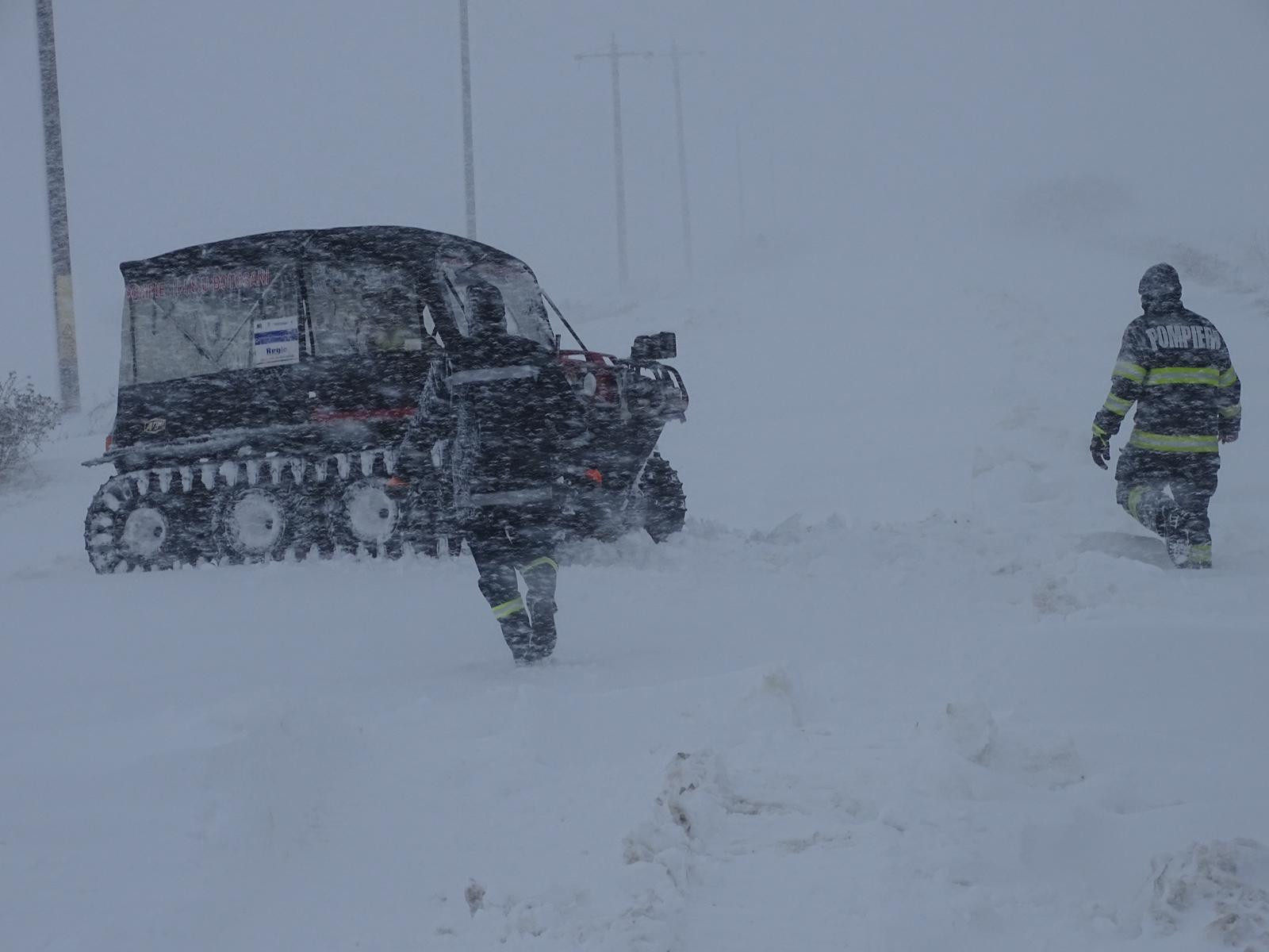 Botoşani: Sute de persoane rămase înzăpezite cu maşinile pe drumurile din judeţ, salvate de pompieri