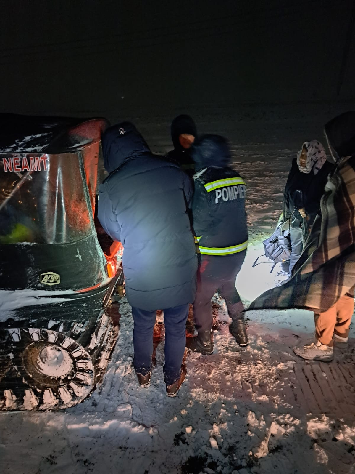 Potrivit sursei citate, 424 de persoane din 207 autovehicule rămase înzăpezite pe drumurile naţionale şi judeţene au fost salvate de pompierii militari şi voluntari, de la primele manifestări ale Codului portocaliu de ninsori abundente şi viscol, până joi dimineaţă, la ora 05:00.