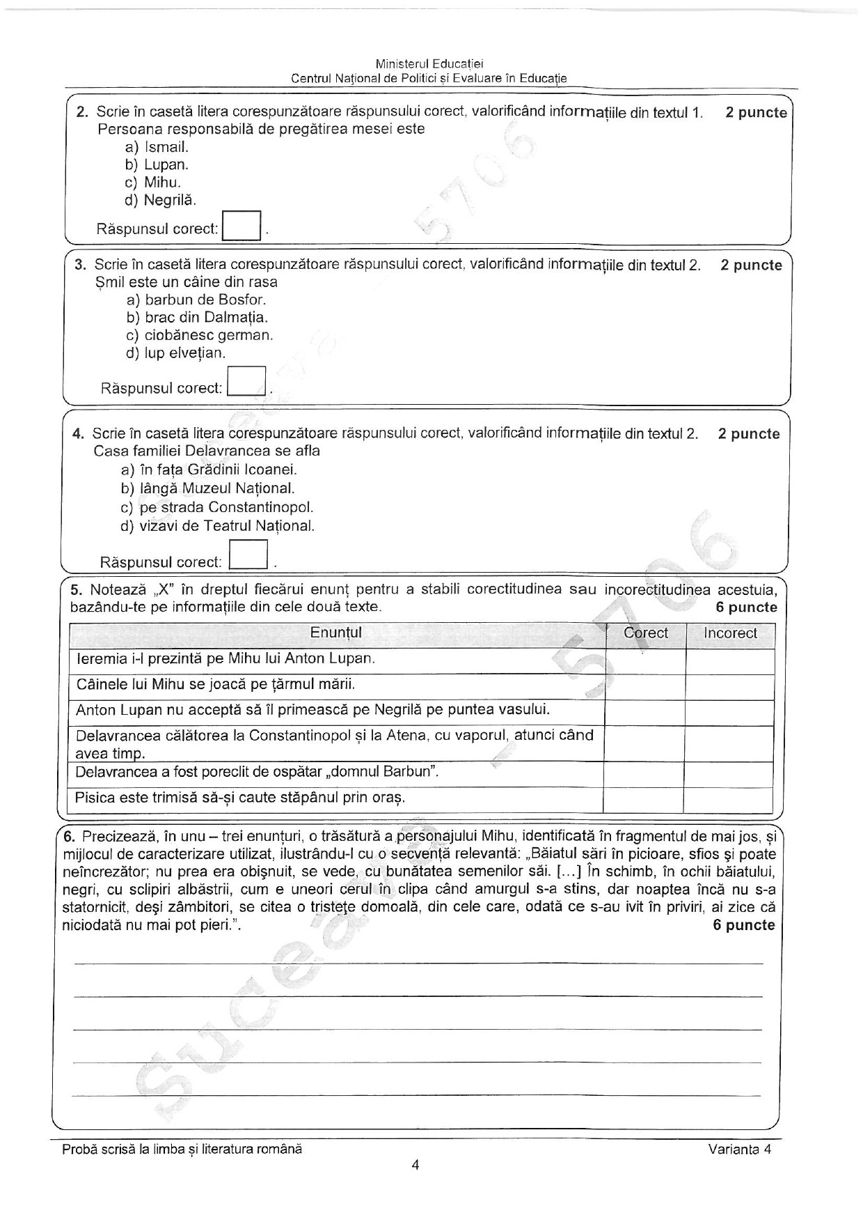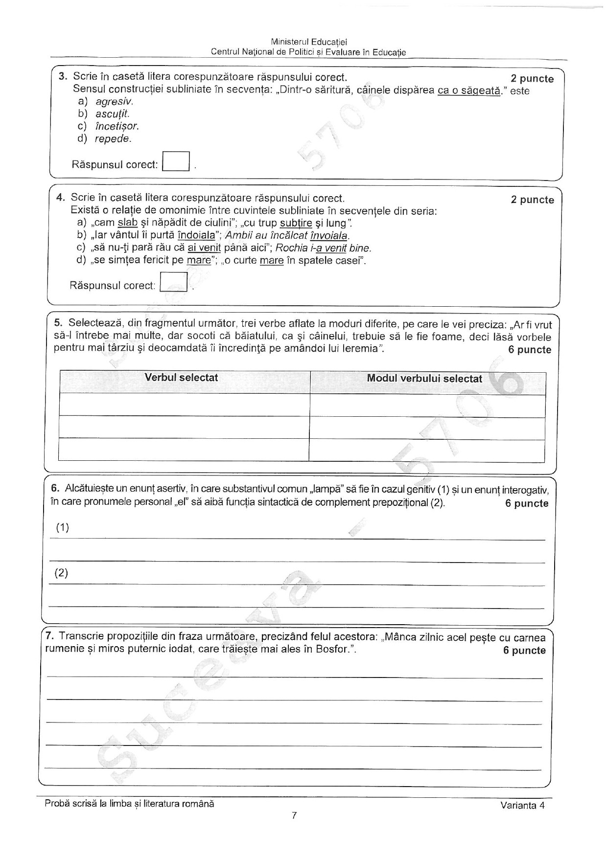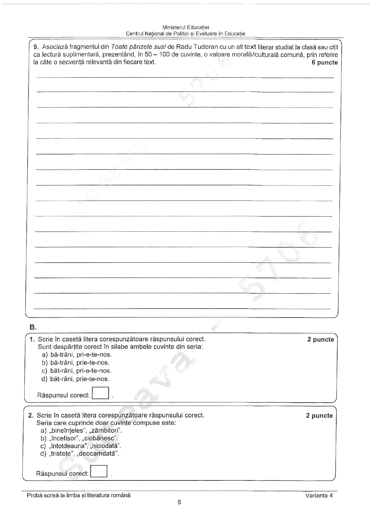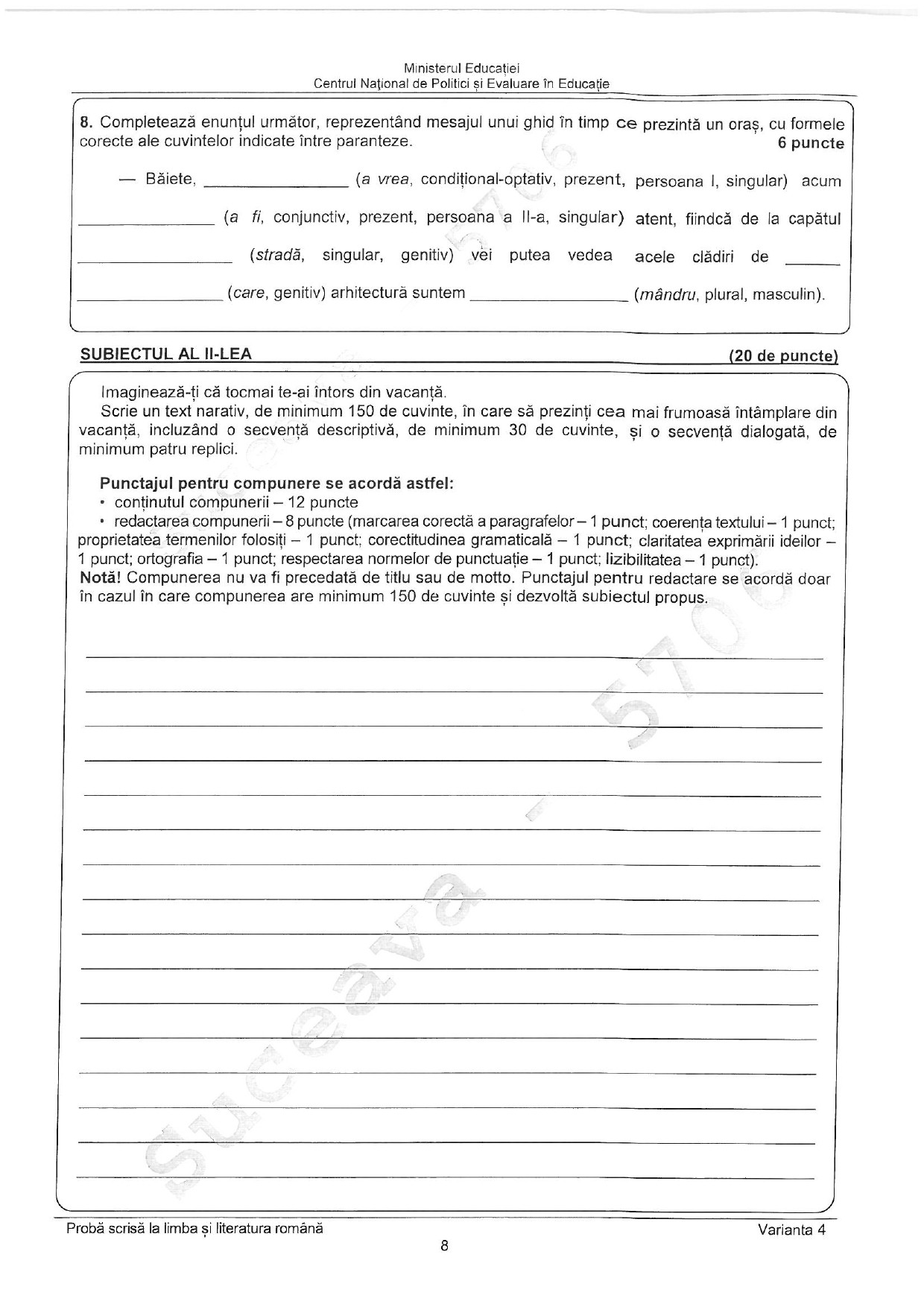 Etichete: bareme, evaluare nationala, romana, subiecte,