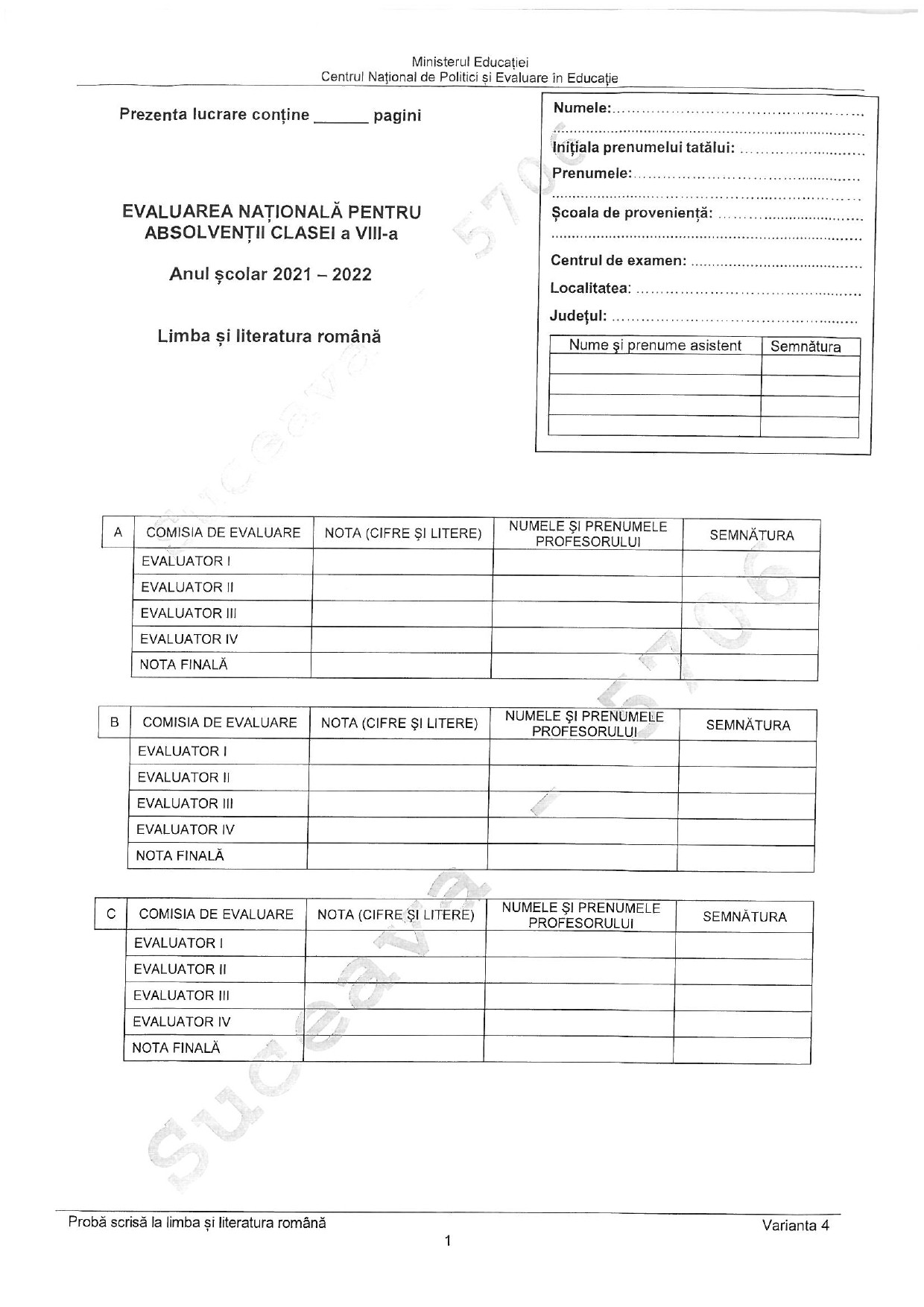 Știrileprotv.ro va publica subiectele la limba română de la Evaluare Națională 2022, imediat ce vor apărea.