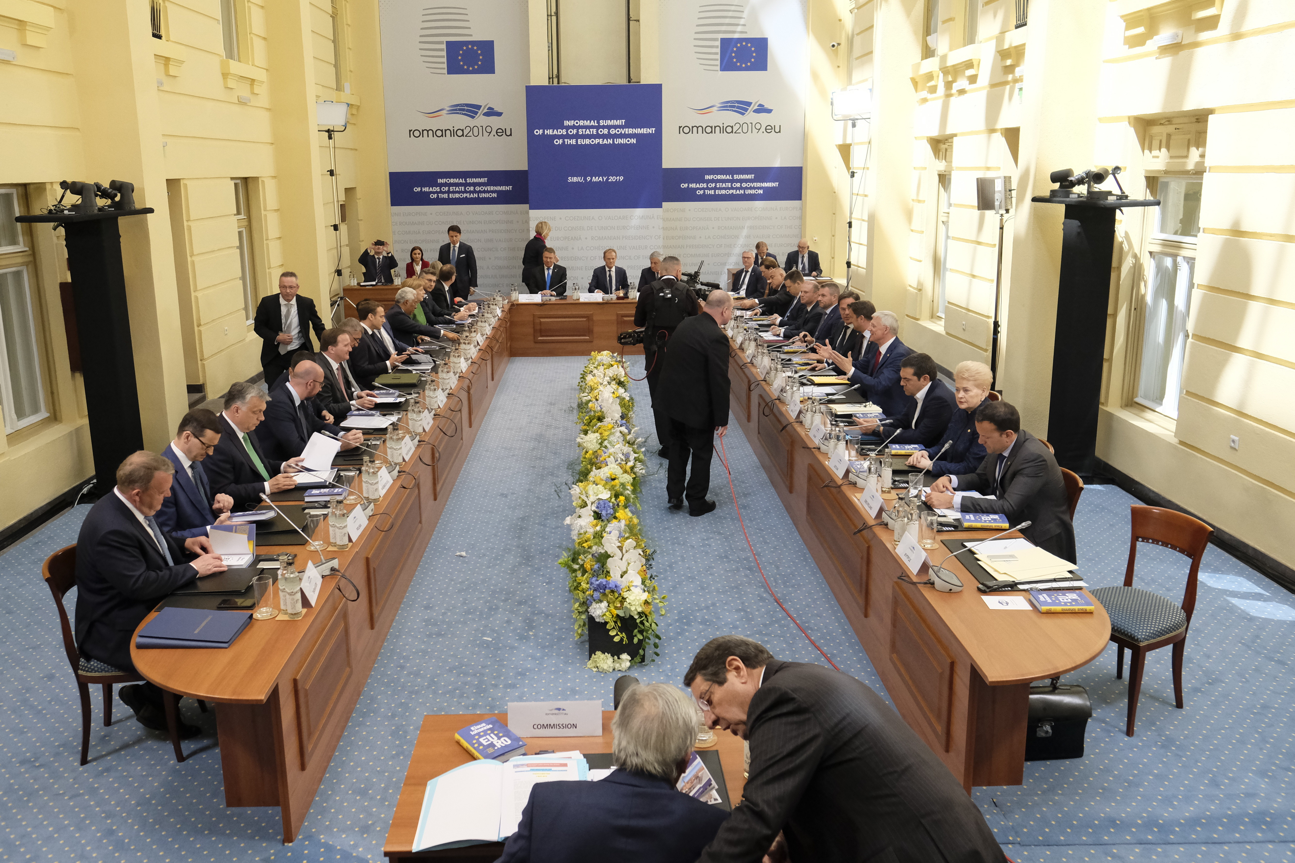 Summitul de la Sibiu. 27 de şefi de stat şi de guvern se vor întâlni aici pentru a decide viitorul Uniunii Europene. 36 de delegaţii oficiale, 400 de invitaţi de rang înalt, 900 de junalisti şi 100 de traducători vor fi, de asemenea, prezenţi la summit.