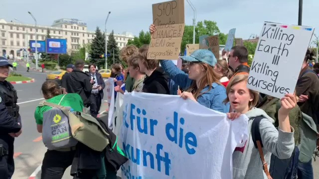 Protestatarii de la Greenpeace sunt tineri veniţi din mai multe ţări, care vor să atragă atenţia asupra degradării mediului şi schimbărilor climatice.