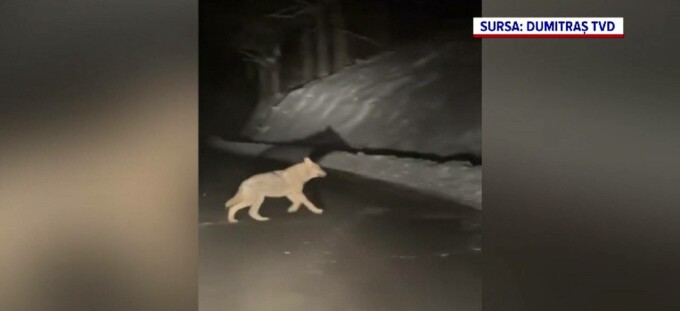 În imagini se observă cum animalele nu par speriate de farurile mașinii. Una dintre sălbăticiuni chiar s-a apropiat de vehicul.