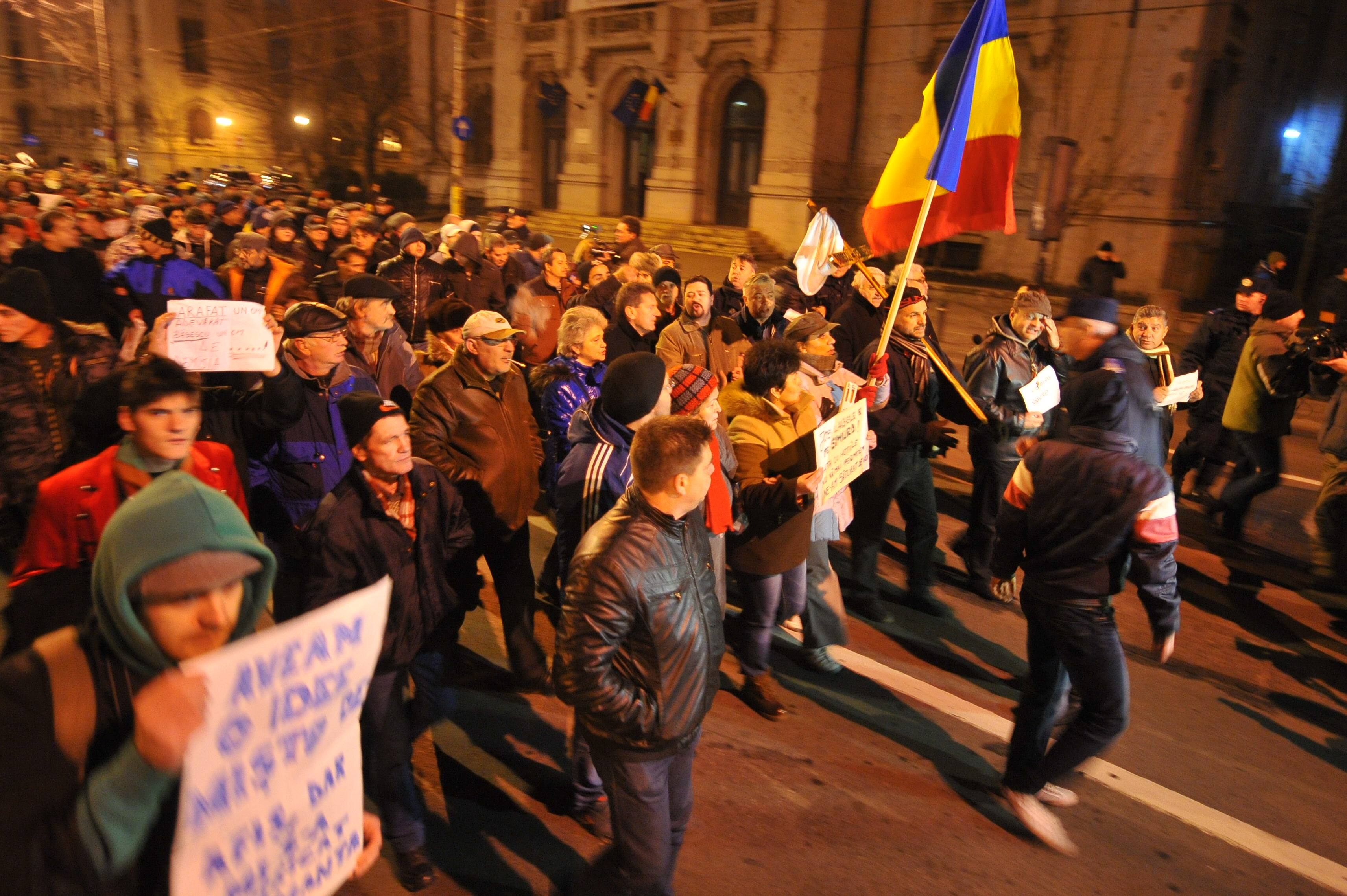 Apogeul protestului a fost atins in jurul orei 20, cand 2.000 de oameni isi strigau vehement nemultumirile in piata.