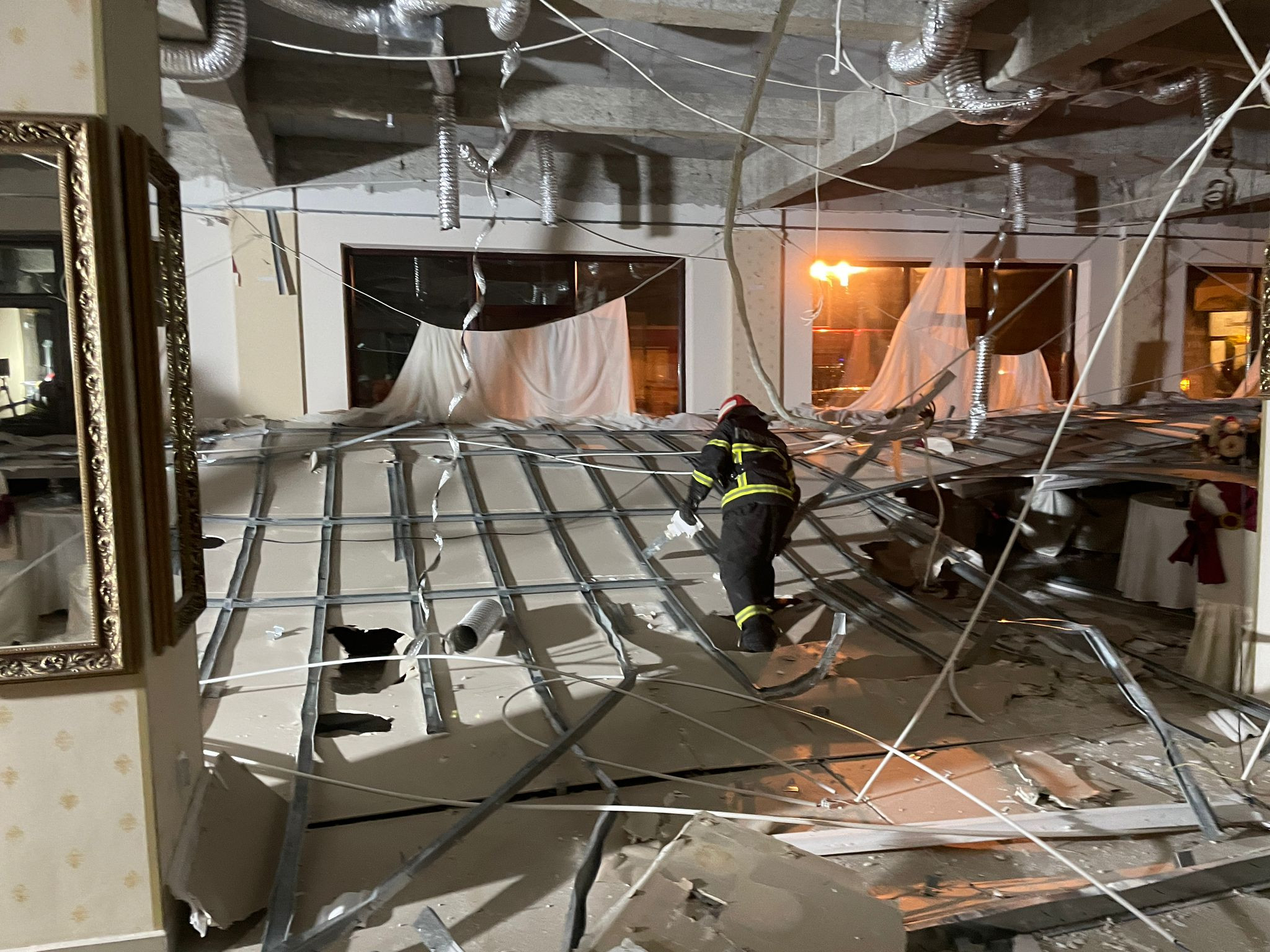Tavan fals, prăbușit într-un restaurant din Brăila. A fost activat activat planul roșu de intervenție | FOTO