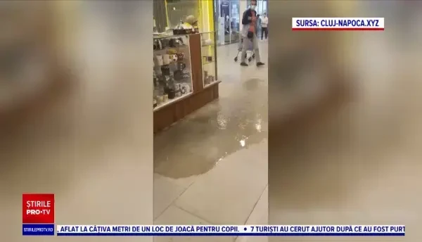 Tavanul unui mall din Cluj s-a prăbușit peste un stand sub ochii clienților. VIDEO