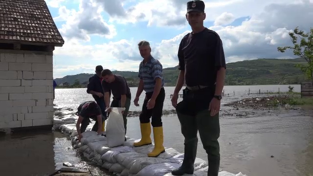 Gagyi Mihai, ISU Mureş: "Acţionăm încontinuu cu motompompe cu capacitate mărită, două camioane de intervenţie, 16 cadre care acţionează de dimineaţă. Avem pregătiţi colegi, apa este pompată i continuu, timp de trei zile a fost pompată încontinuu cu pompele de capacitate maximă".
