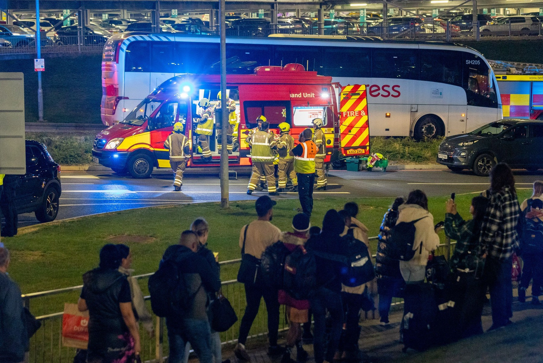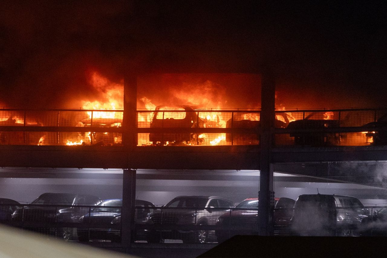 S-au putut auzi alarme de vehicule şi explozii puternice, iar un martor a descris viteza cu care focul a străpuns etajul superior al parcării ca fiind "incredibilă".