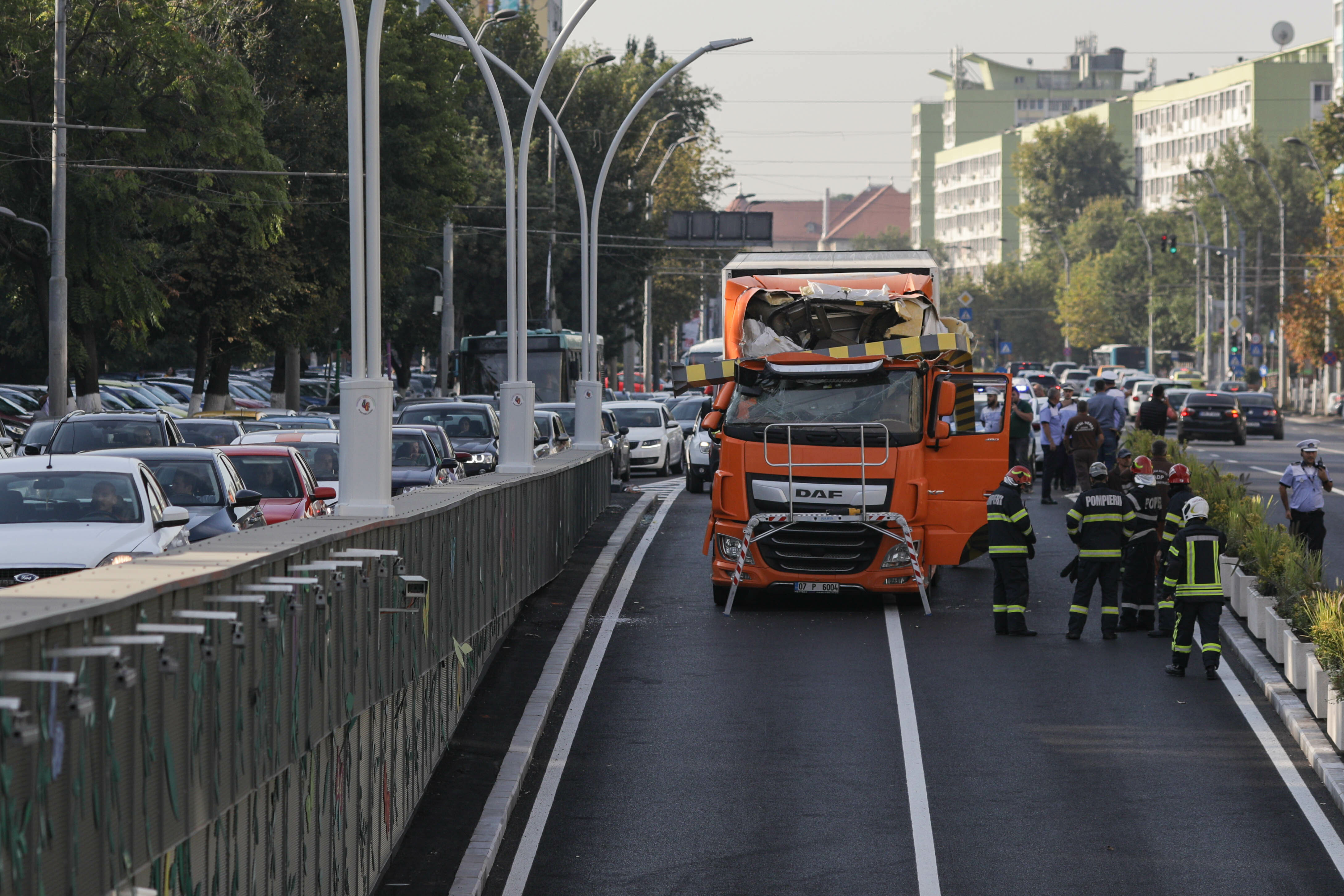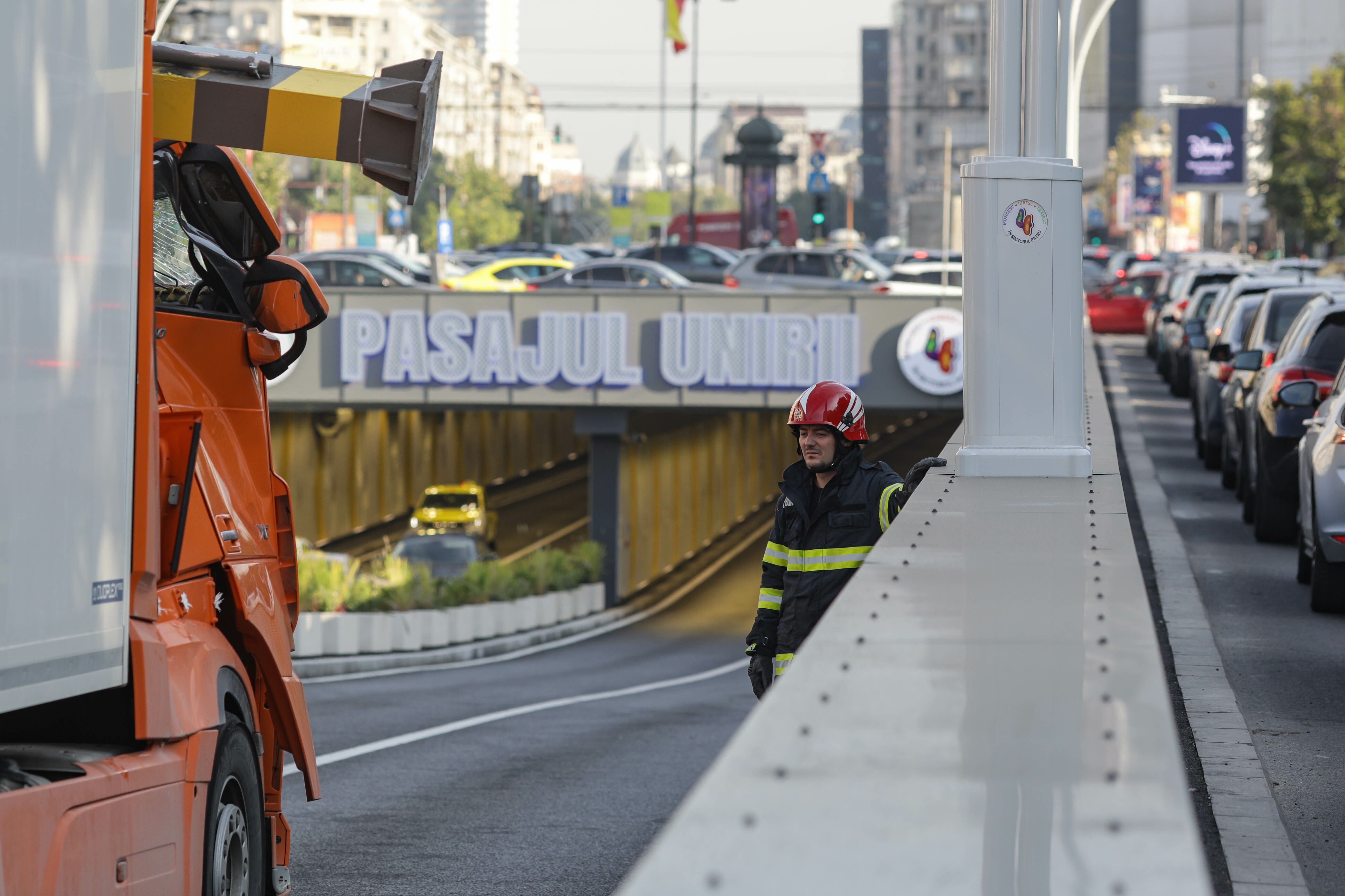 Traficul a fost blocat în Pasajul Unirii din București, la câteva zile de la redeschidere. Șofer de TIR, amendat GALERIE FOTO