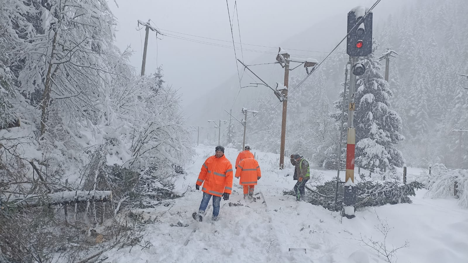 De asemenea, din cazua ninsorii abundente, a viscolului şi a ploii îngheţate, în zona de munte a judeţului Suceava, pe secţiunea Câmpulung Moldovenesc – Vatra Dornei – Ilva Mică, s-au înregistrat numeroşi arbori căzuţi în gabaritul liniei CF. Ca urmare, s-a intervenit cu drezine pantograf şi cu personal specializat pe secţiile de cale ferată de pe raza Regionalei Iaşi, Pojorâta-Mestecăniş, Ilva Mică-Măgura, Grădiniţa-Larion pentru remedierea deranjamentelor înregistrate la sistemul de alimentare cu energie electrică, unde nu exista tensiune în firul de contact.