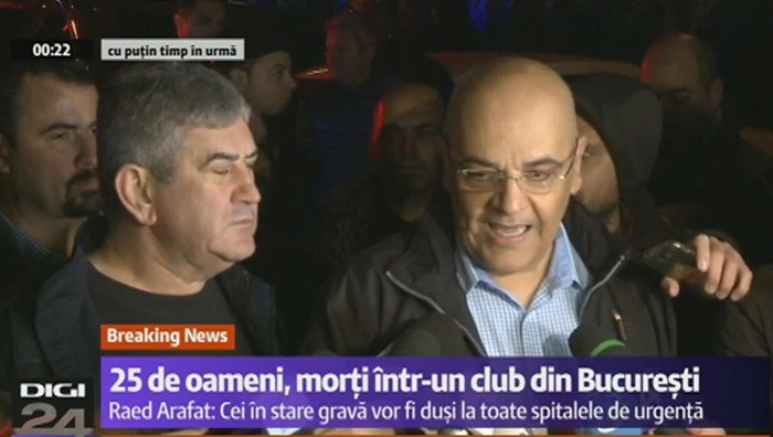 20:30 Secretarul de stat in MAI Raed Arafat a declarat sambata la Pro TV ca ceea ce s-a intamplat la Clubul Colectiv reprezinta o "un dezastru, o catastrofa". Vezi aici interviul