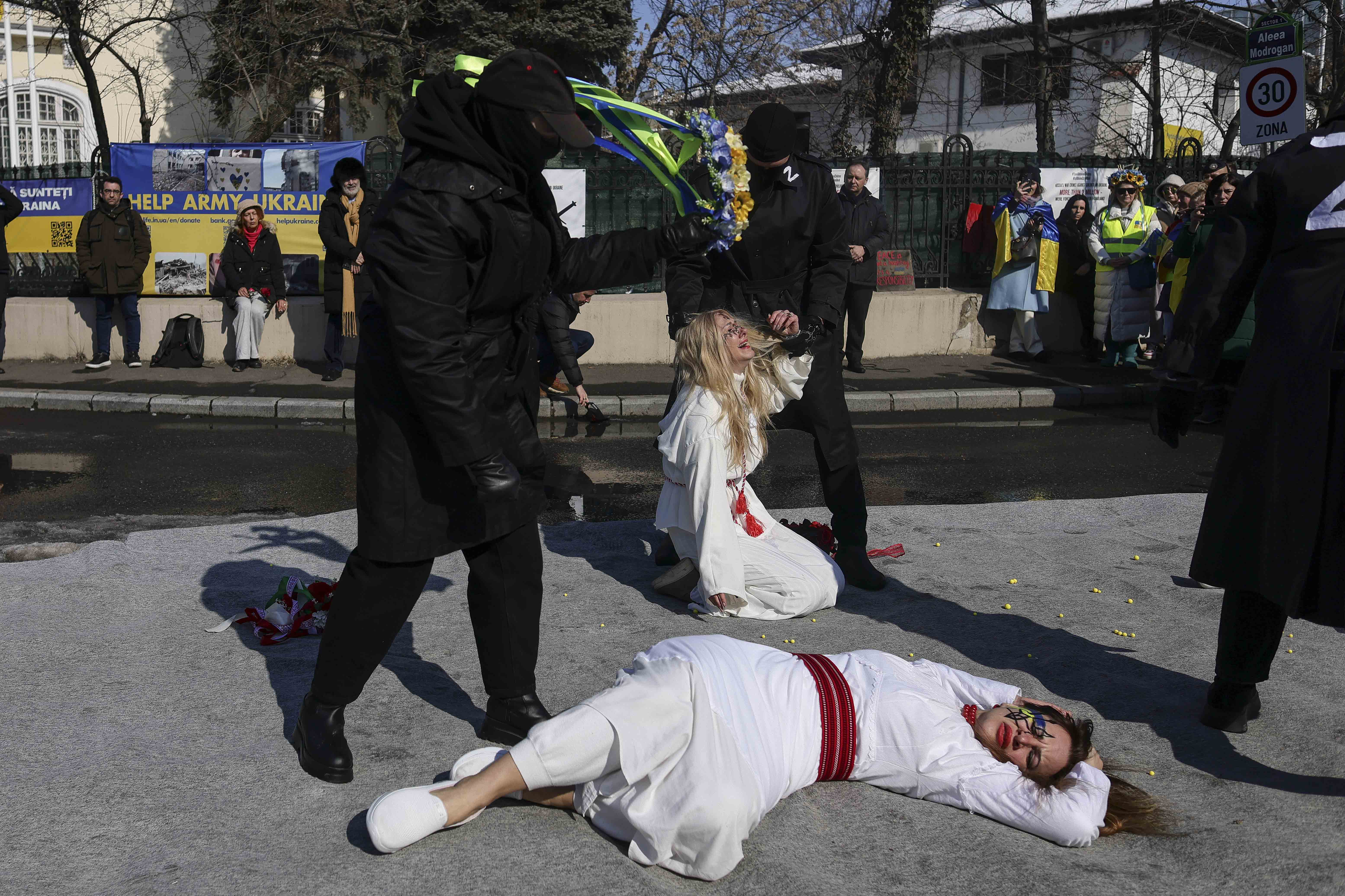 Trei ani de război. Refugiații ucraineni din România au pichetat Ambasada Rusiei cerând pace. „Stop Putin” | GALERIE FOTO