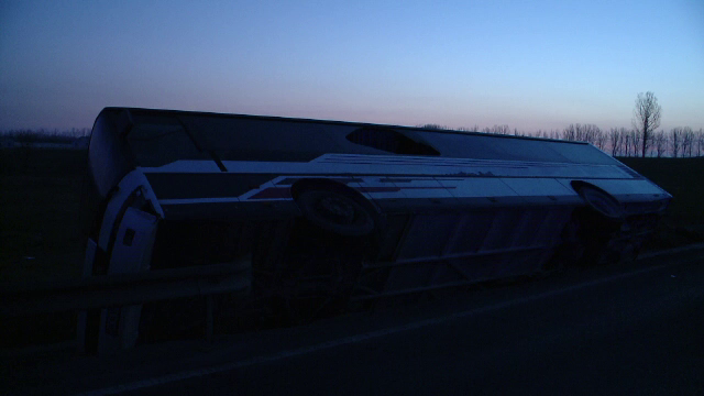 Din cauza impactului, autocarul s-a rasturnat pe o parte pe sosea si a blocat pasagerii inauntru. Dintre cele noua persoane care au ajuns la spital, trei au fracturi mai grave, insa restul au suferit doar contuzii si escoriatii si sunt in afara oricarui pericol.
