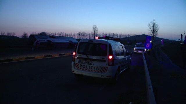 "Am incercat sa evit o caruta care era pe mijlocul drumului si asta s-a intamplat", a spus soferul autocarului.