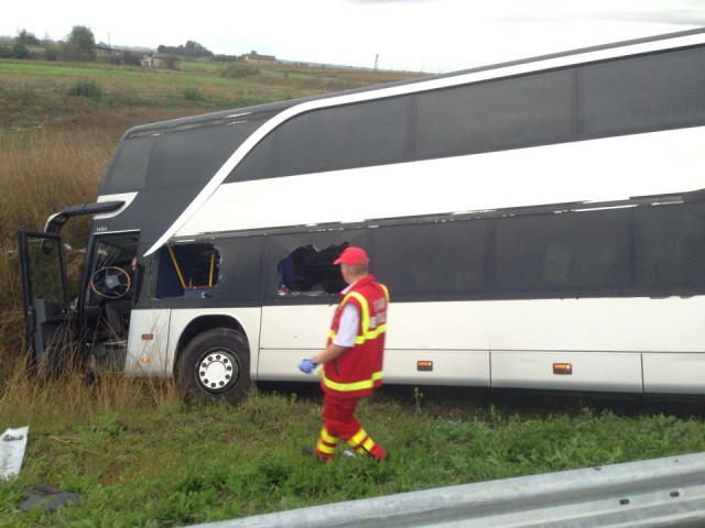 Pasager: "Ne-a fost frica sa nu se incline autocarul mai tare. Pompierii ne-au scos prin geam si prin parbriz."