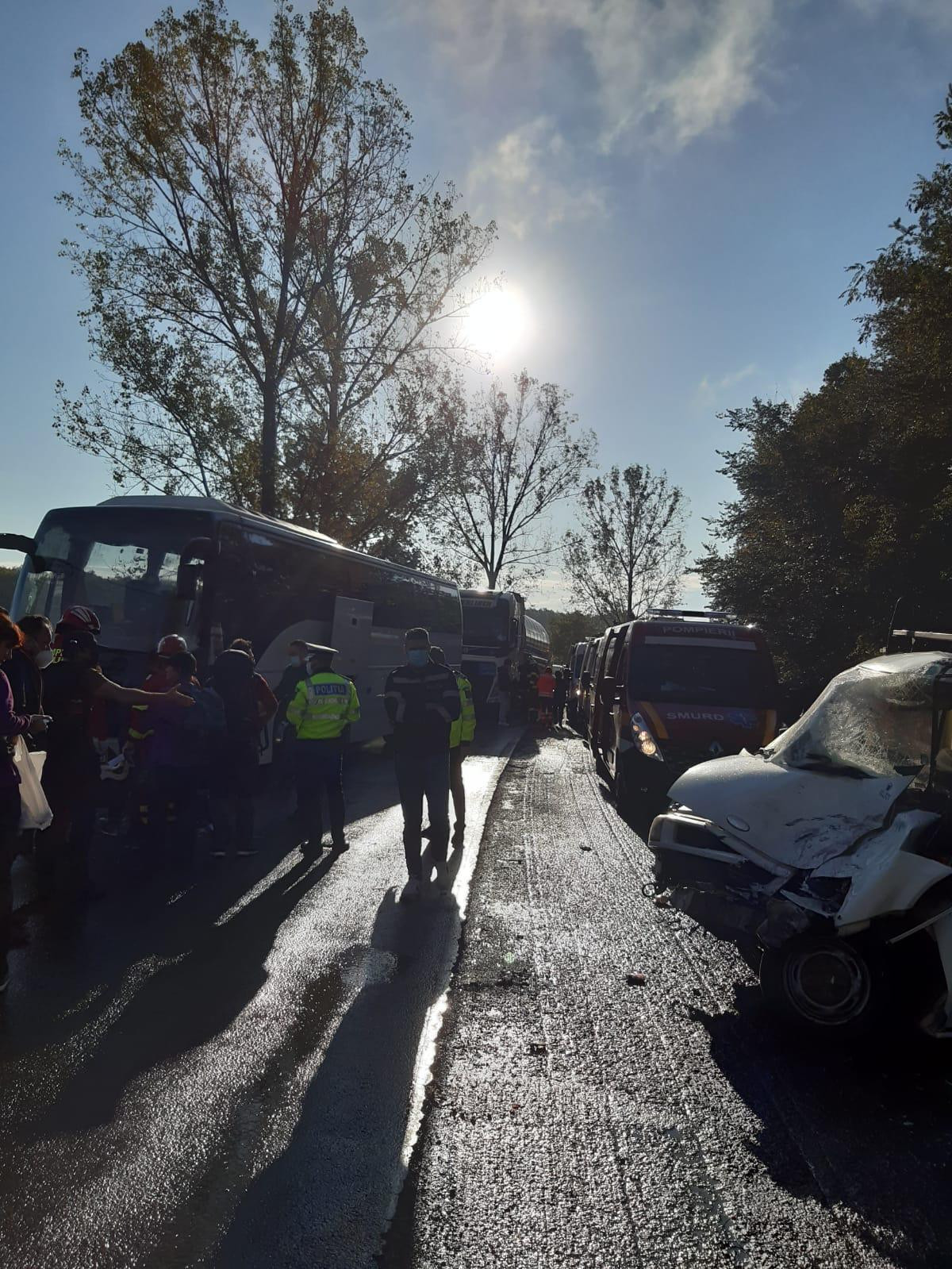 La locul accidentului au fost trimise două ambulanţe SMURD de prim ajutor, o autospecială de transport victime multiple, o autospecială de terapie intensivă mobilă, o autospecială de stingere cu apă şi spumă şi două echipaje din cadrul serviciului de ambulanţă judeţean.