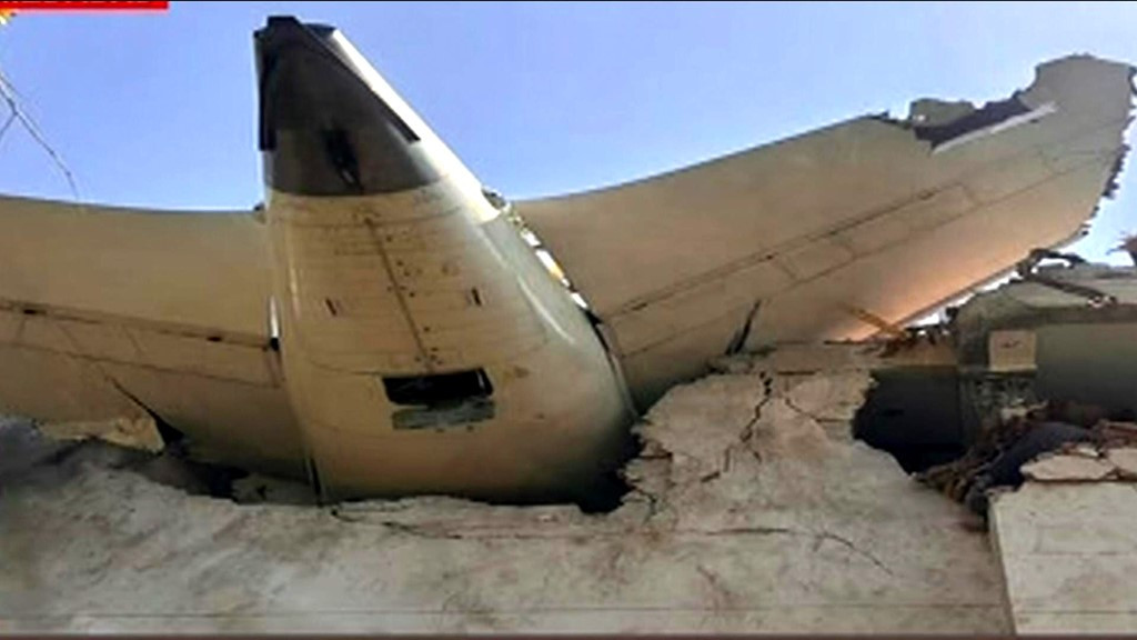 UPDATE 14.05: Coada avionului poate fi văzută ieșind dintr-o clădire în fotografiile de la locul accidentului.
