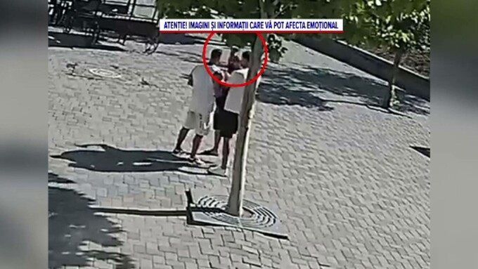 În imaginile surprinse de camerele de supraveghere se vede cum cei doi au întâi un conflict verbal, iar o a treia persoană încearcă să aplaneze cearta. La un moment dat, însă, discuțiile degenerează, iar agresorul îl înjunghie pe celălalt în zona gâtului.