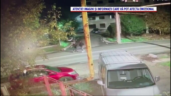 O cameră de supraveghere a surprins cum doi bărbați vor să traverseze strada neregulamentar.