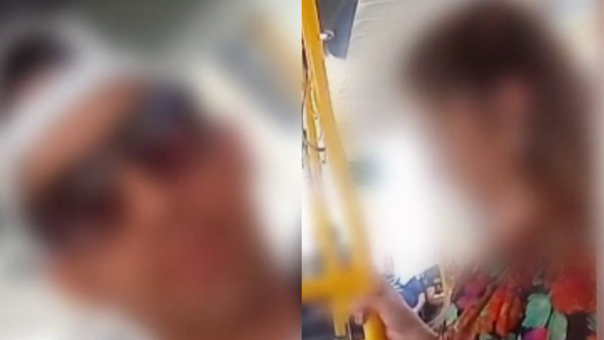 Tot din imagini se observă că nimeni nu intervine în timp ce individul îi transmite mai multe replici cu conotații sexuale.