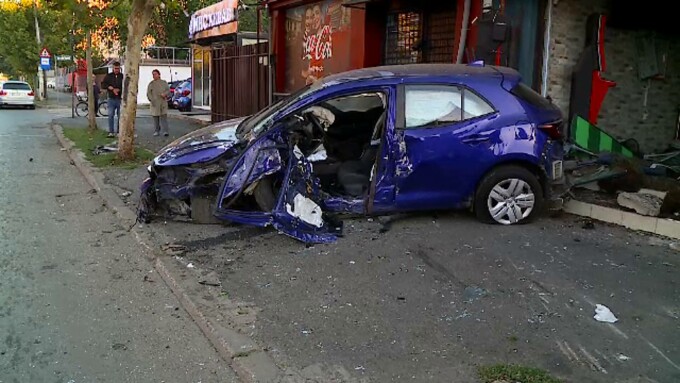 Grav accident în această dimineață pe Șoseaua Chitilei din Capitală. O cameră de supraveghere a surprins cum un cetățean congolez, băut, a pierdut controlul mașinii și s-a izbit de un stâlp.