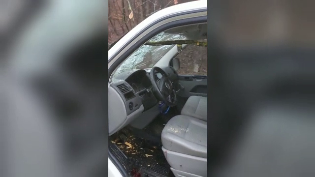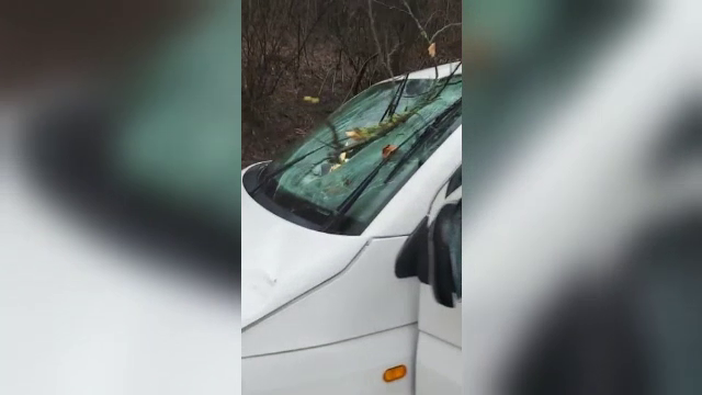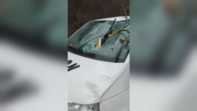Pe un drum național, la 14 kilometri de Sighișoara un copac a căzut ca secerat și a strivit parbrizul unei mașini care se afla în trafic. Milimetric, șoferul a reușit să scape doar cu mai multe zgârieturi.